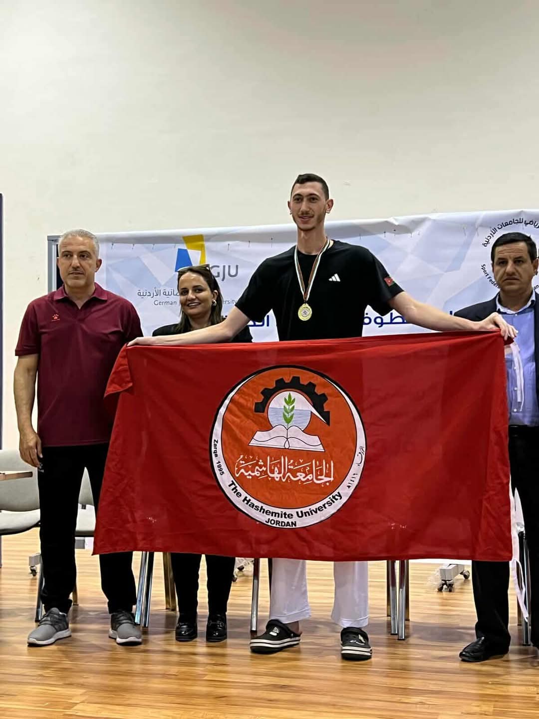 عمون - تمكن فريق الجامعة الهاشمية للتايكوندو طلاب من الحصول على المركز الاول في بطولة الاتحاد الرياضي للجامعات الاردنية التي استضافتها الجامعة الالمانية الاردنية بمشاركة 21 جامعة اردنية حكومية وخاصة، توج فيها ابطال الهاشمية عن جدارة واستحقاق وبعد سلسلة من اللقاءات بميداليتين ذهبيتين حصل عليها كلا من الطالب محمد العذاربة في وزن تحت80 كغم ،والطالب يزن يغمور في وزن تحت 74 كغم. |