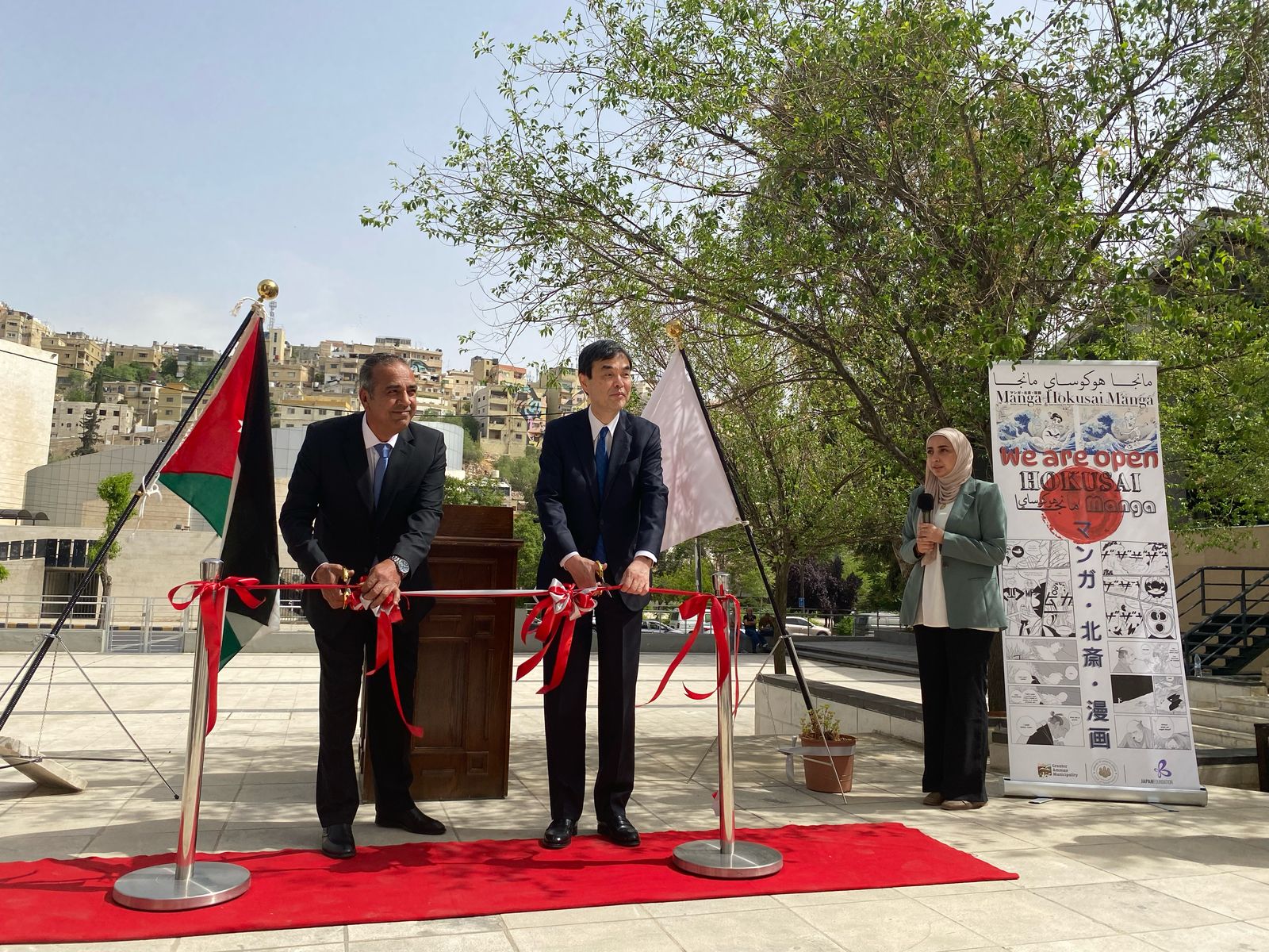 عمون - استضافت سفارة اليابان في الأردن، بالتعاون مع مؤسسة اليابان وأمانة عمان الكبرى، حفل افتتاح معرض "مانغا هوكوساي مانغا" في جاليري رأس العين، عمّان، الأردن، في خطوةٍ تُمثّل إنجازًا آخر في تعزيز التفاهم الثقافي المتبادل بين اليابان والأردن.