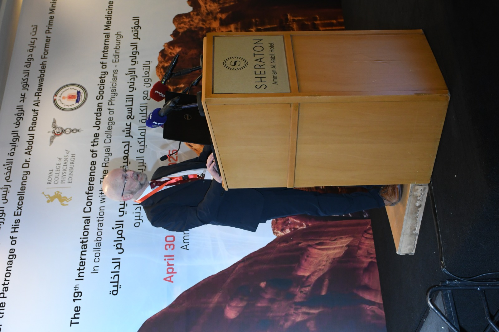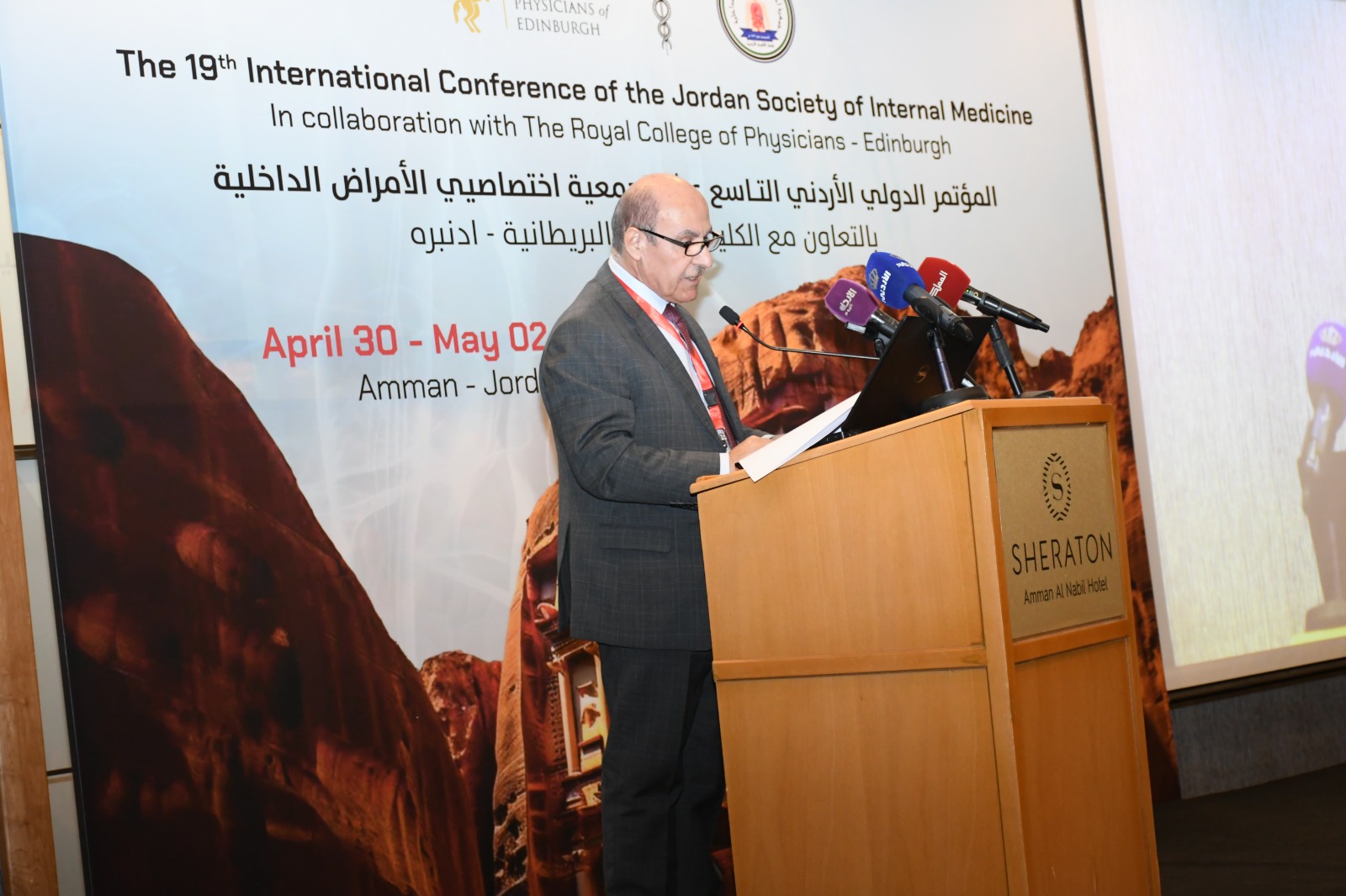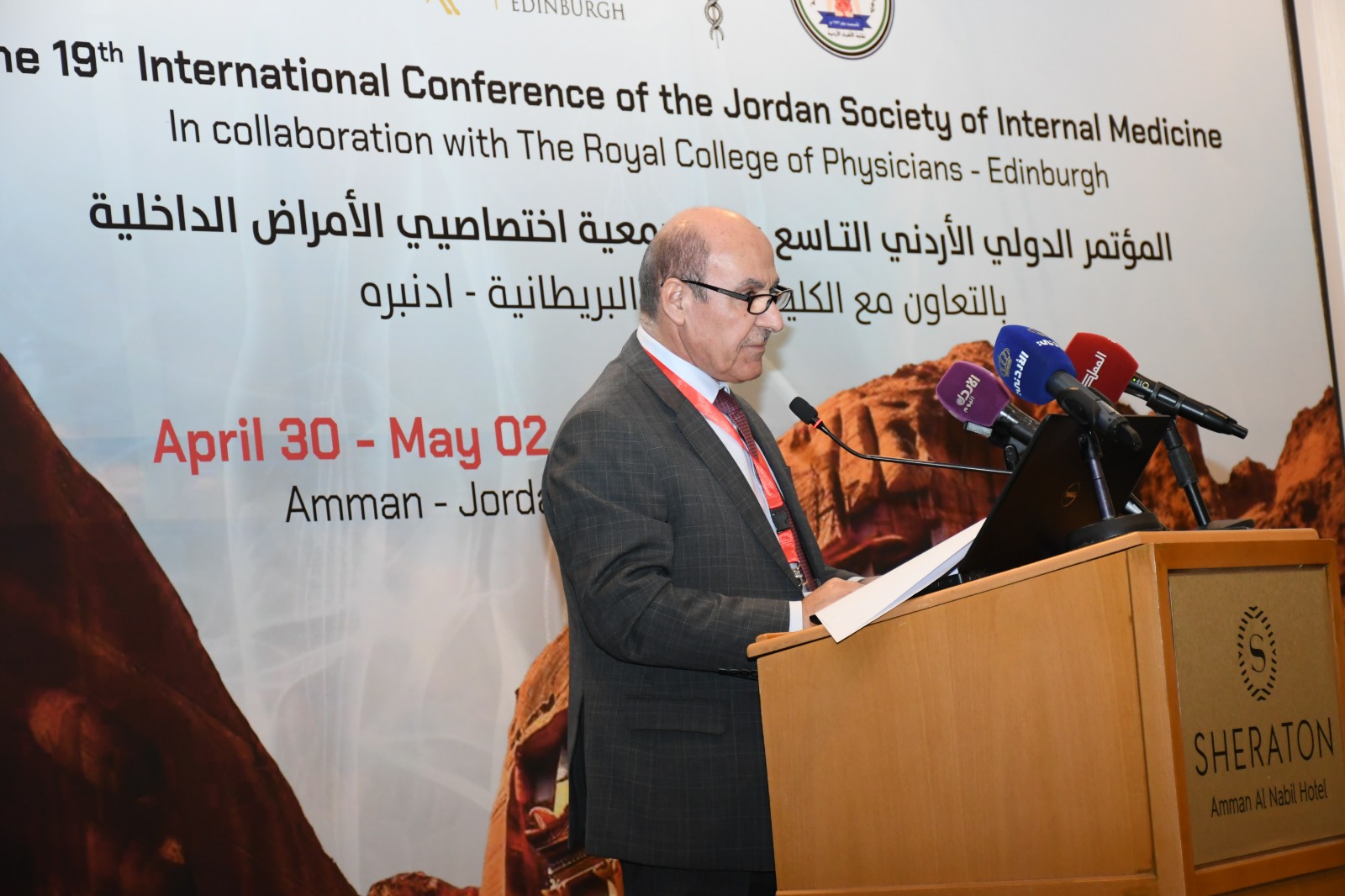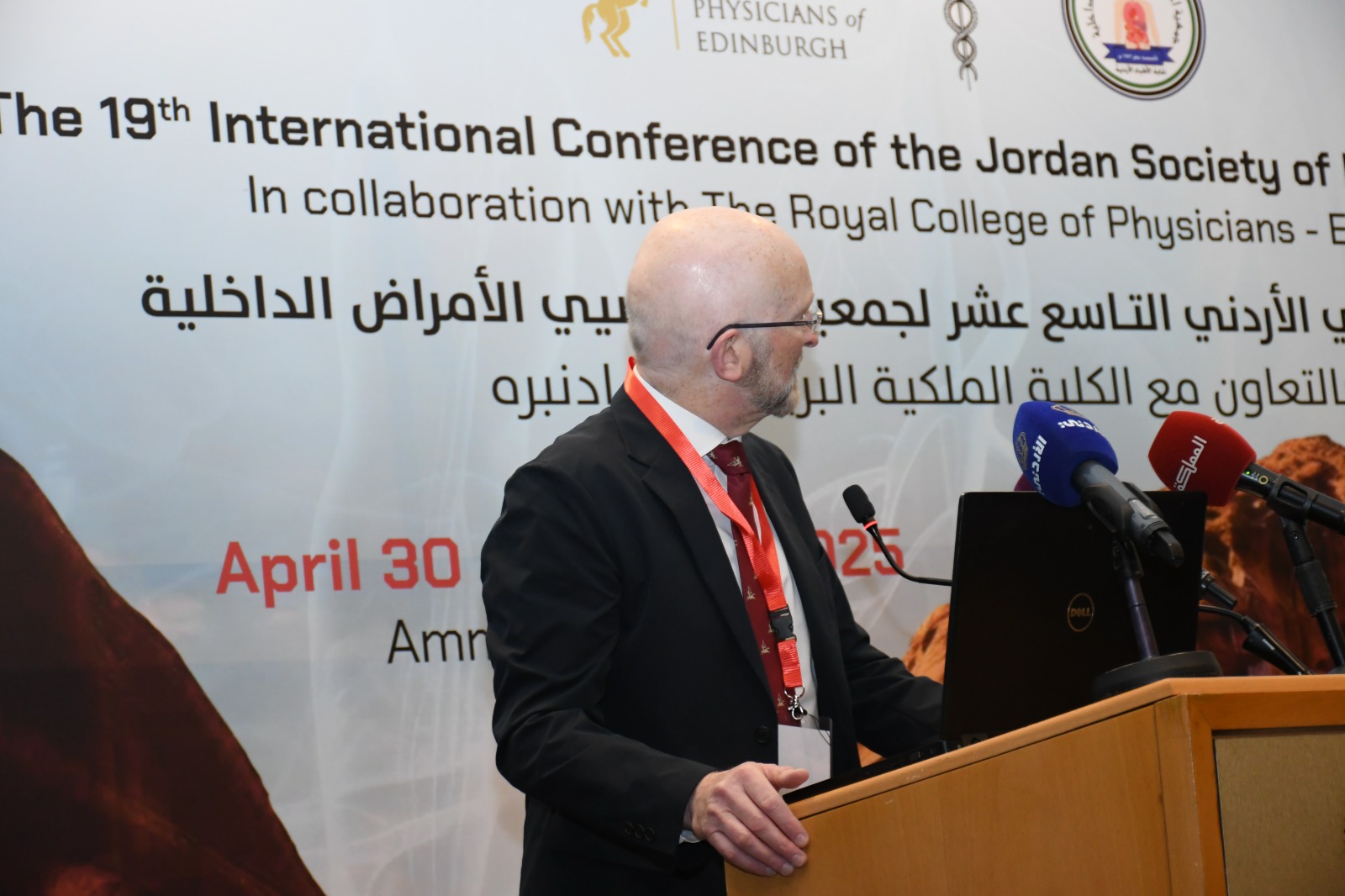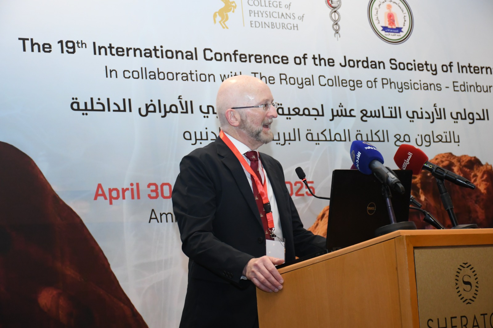 ورحب الدكتور العبداللات بالضيوف من الكلية الملكية البريطانية (أدنبرة)، على ثقتهم العالية بجمعية الأمراض الداخلية الأردنية وتعاونهم لعقد هذا المؤتمر الذي ينعقد دوريا بالتعاون مع هذه الكلية التي تعتبر من أعرق كليات الطب في أوروبا والعالم.