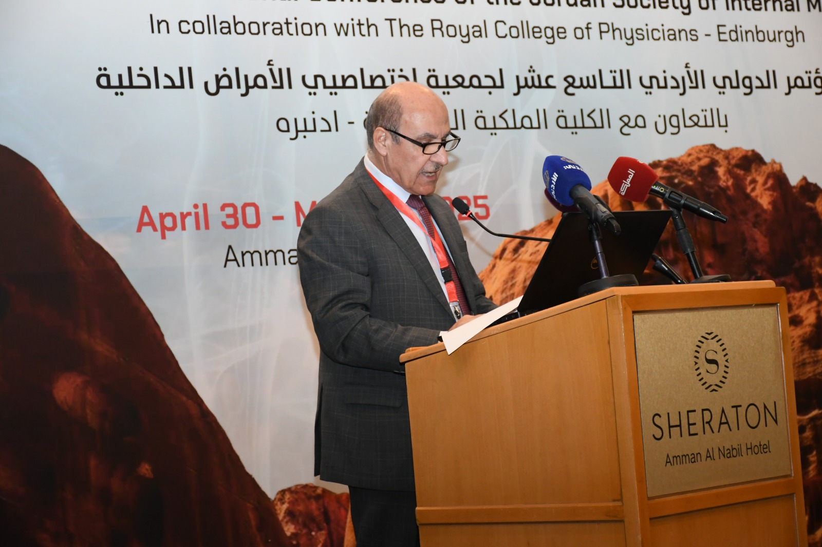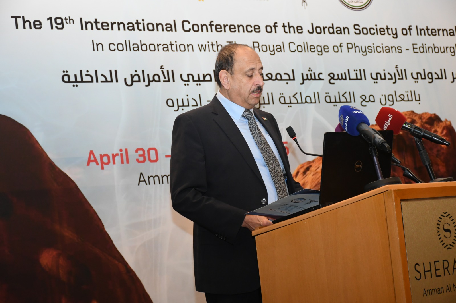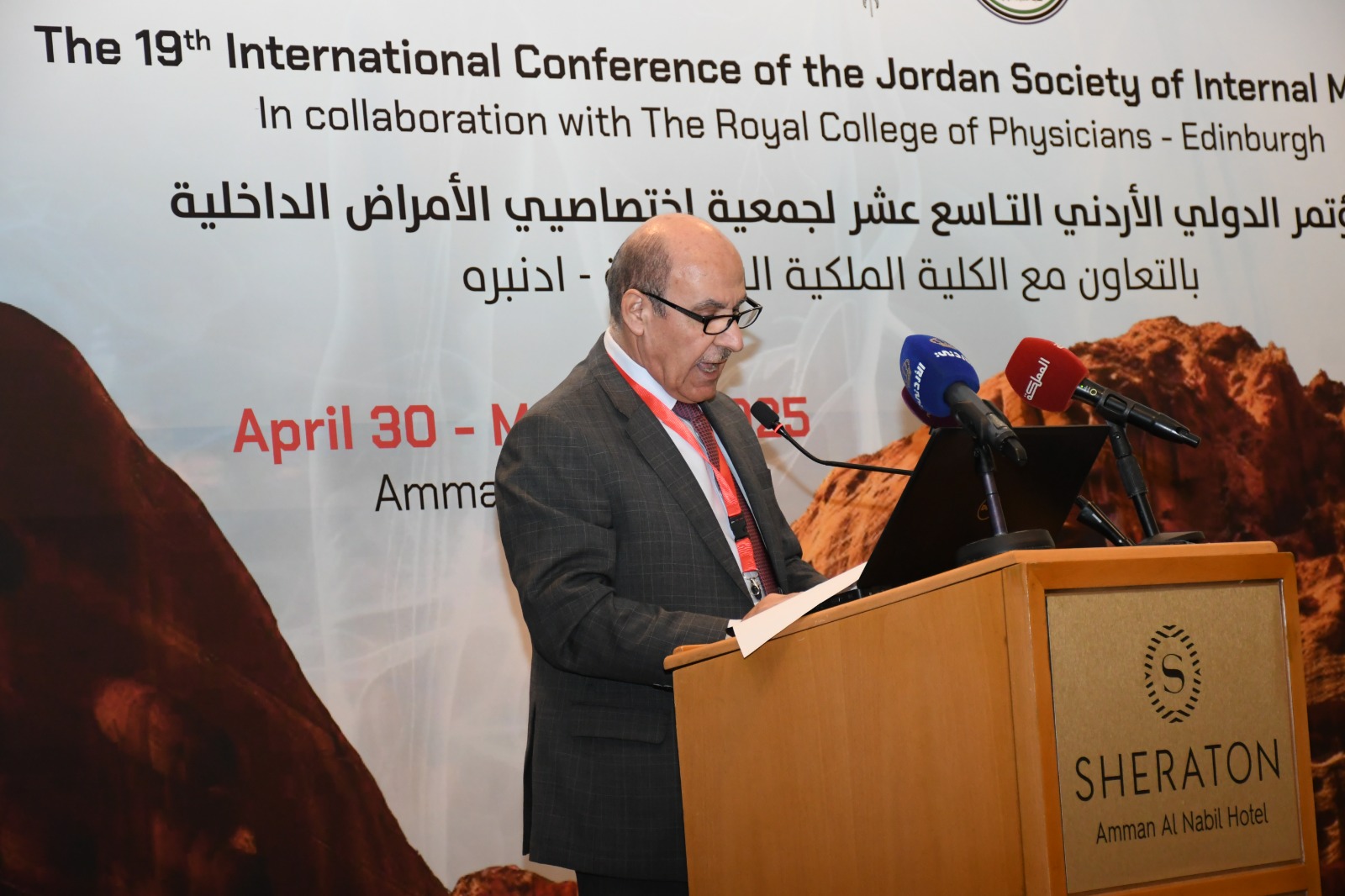 وأكّد أنّ المؤتمر يأتي يأتي خطوة جديدة لإتاحة الفرصة لإطلاع الاطباء على آخر المستجدات العلمية في تخصص الأمراض الداخلية وفروعها، وإلى خلق تفاعل إيجابي مع الأطباء المتميزين في العالم، وإلى إبراز الكفاءات الطبية من الأطباء الذين رسخو إمكاناتهم العلمية داخل الأردن وخارجه، وكذلك مد جسور التواصل بين هؤلاء الأطباء وزملائهم في الكلية الطبية الملكية أدنبرة.