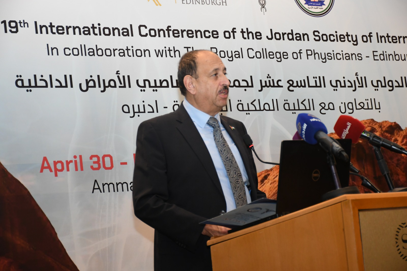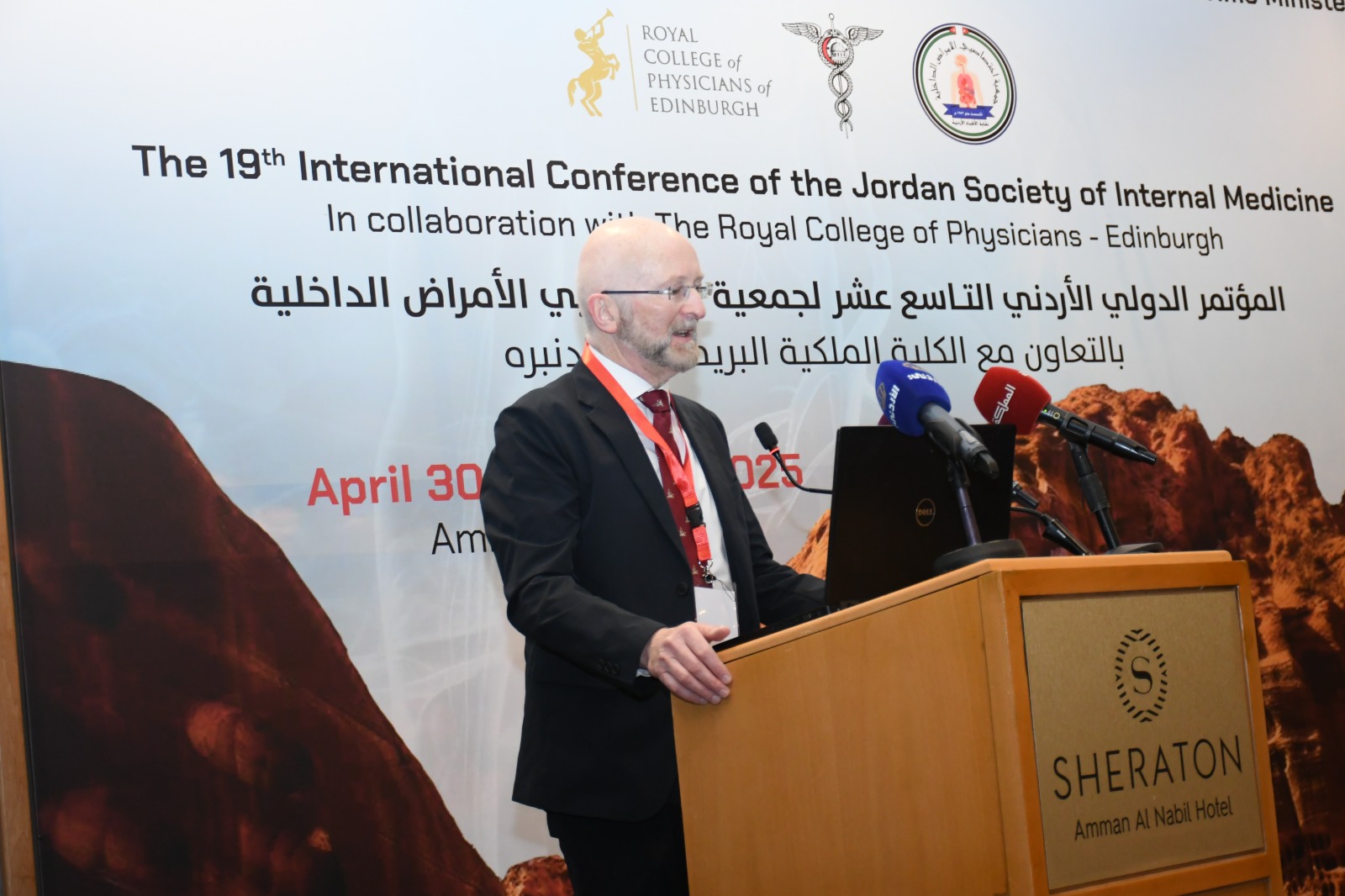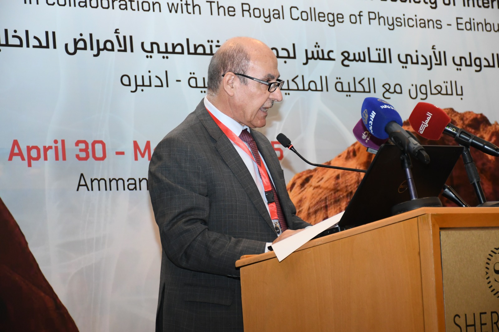 وذكر أنّ العلاقة مع مع الكلية تعود إلى أعوام كثيرة ، فقد بدأ هذا التعاون في المؤتمر الثامن للأمراض الداخلية مع كلية الأطباء الملكية (أدنبرا) في أيار عام 2006 واستمر إلى هذا اليوم، مشيراً إلى أن الأطباء الأردنيون قد أصبحوا بيوتا من الخبرة التخصصية العالية حتى أصبح الأردن محط أنظار الجميع للاستشفاء والسياحة العلاجية من كافة الدول العربية والصديقة.