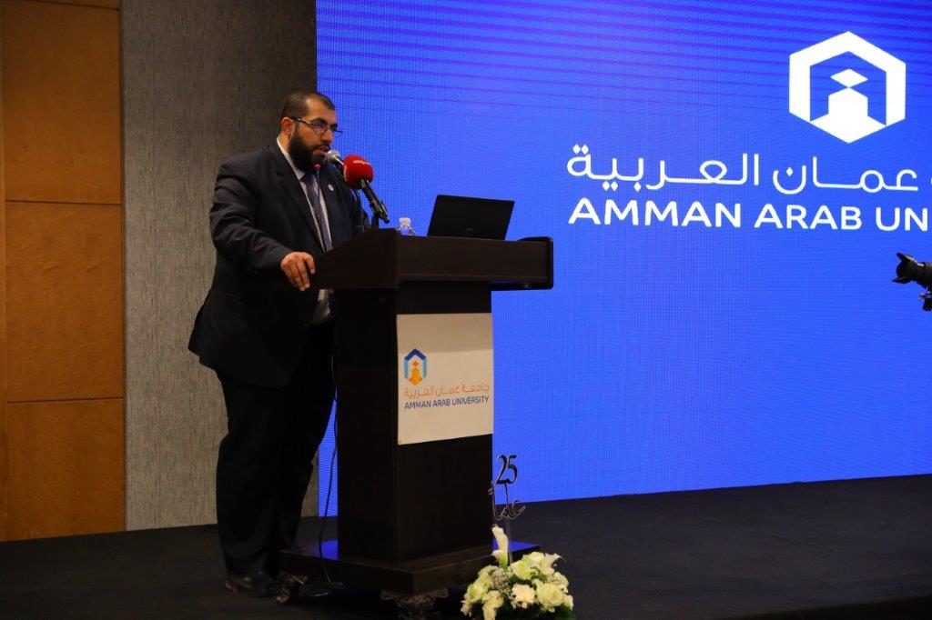 واستهل الدكتور الجازي كلمته خلال الحفل بالحمد والثناء على نعمة العلم التي تنير دروب الأوطان، مشيدًا بالمسيرة الحافلة التي خطّتها جامعة عمان العربية منذ تأسيسها عام 1999، مؤكداً أن الجامعة كانت وما تزال نموذجًا للريادة والتميز ومنارة حقيقية تسهم في نهضة الوطن وتقدمه وتُجسد رسالة التعليم الراقي الذي يعانق المستقبل ويصونه ، مُشيراً إلى أننا نحتفل باليوبيل الفضي لجامعةٍ كانت وما زالت منارة للعلم والعلماء وتميزت بتفوقها وريادتها وأثبتت مكانتها البارزة على الصعيدين الوطني والإقليمي، لتظل نموذجًا يحتذى به في مجال التعليم، الابتكار، وخدمة المجتمع ، وبأن جامعة عمان العربية منذ انطلاقتها حرصت على بناء بيئة تعليمية شاملة تحتضن التعددية وتعزز قيم الوسطية.
