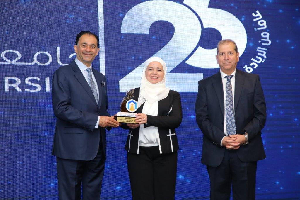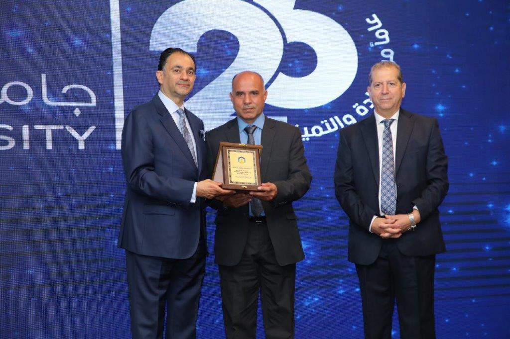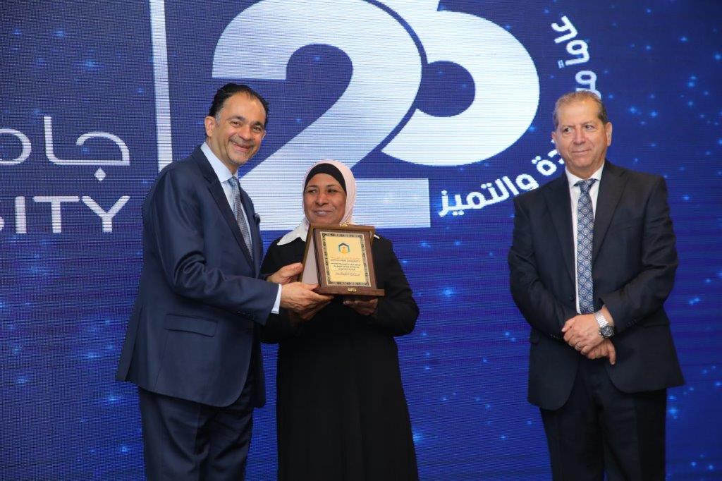 وفي ختام الحفل الذي أدار فقراته عريف الحفل السيد وضاح مسمار مدير دائرة الإعلام والعلاقات العامة، تم تكريم قدامى العاملين في الجامعة تقديرًا لإسهاماتهم القيمة التي كان لها دور كبير في بناء هذا الصرح الأكاديمي المميز، كما تم تكريم أعضاء الهيئتين التدريسية والإدارية الذين تميزوا في أدائهم وقدموا مساهمات استثنائية في رفع مستوى التعليم والخدمات الأكاديمية، بالإضافة إلى تكريم الكليات التي نالت اعتمادات دولية مرموقة، كذلك تم تكريم الفائزين من أعضاء الهيئة التدريسية الذين حصلوا على براءة اختراع، ومشروع بحث علمي مموّل دولياً، والمتميزين في البحث العلمي، وأفضل عضو هيئة تدريس، بالإضافة إلى تكريم أفضل موظف هيئة إدارية وأفضل موظف خدمات عامة، تكريمًا لإبداعاتهم التي أثرت في تقدم مسيرة الجامعة، ، وتكريم كلية الشريعة على مبادرتهم في تأسيس مسجد الجامعة،وكذلك الكليات والدوائر التي حققت أعلى معايير مؤشرات الأداء الرئيسة لعام 2023-2024، مما يعكس التزام الجامعة المستمر بالتميز الأكاديمي والجودة على الصعيدين المحلي والدولي.