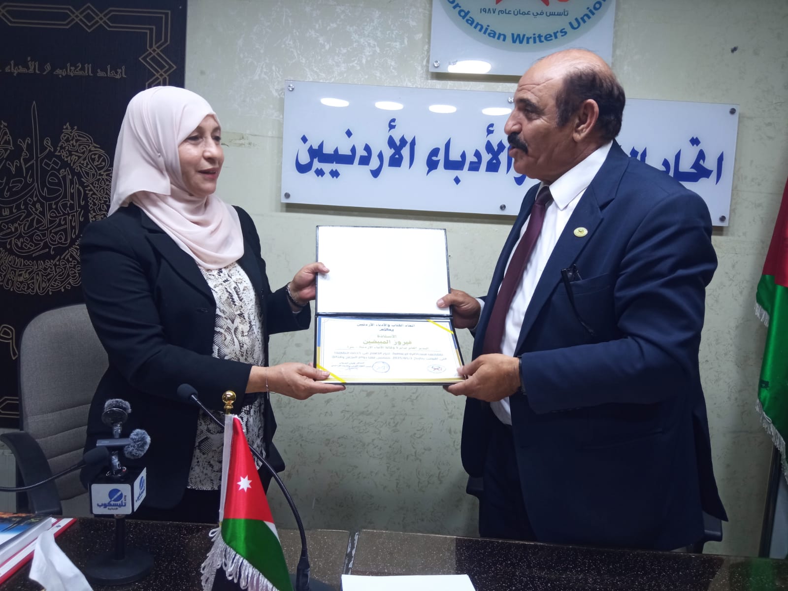 جاء ذلك خلال محاضرة ألقتها مساء امس السبت في مقر اتحاد الكتاب والأدباء الأردنيين بعمان، بحضور حشد من المهتمين بالشأن الثقافي والإعلامي، يتقدمهم رئيس الاتحاد، الشاعر عليان العدوان، وأعضاء الاتحاد.