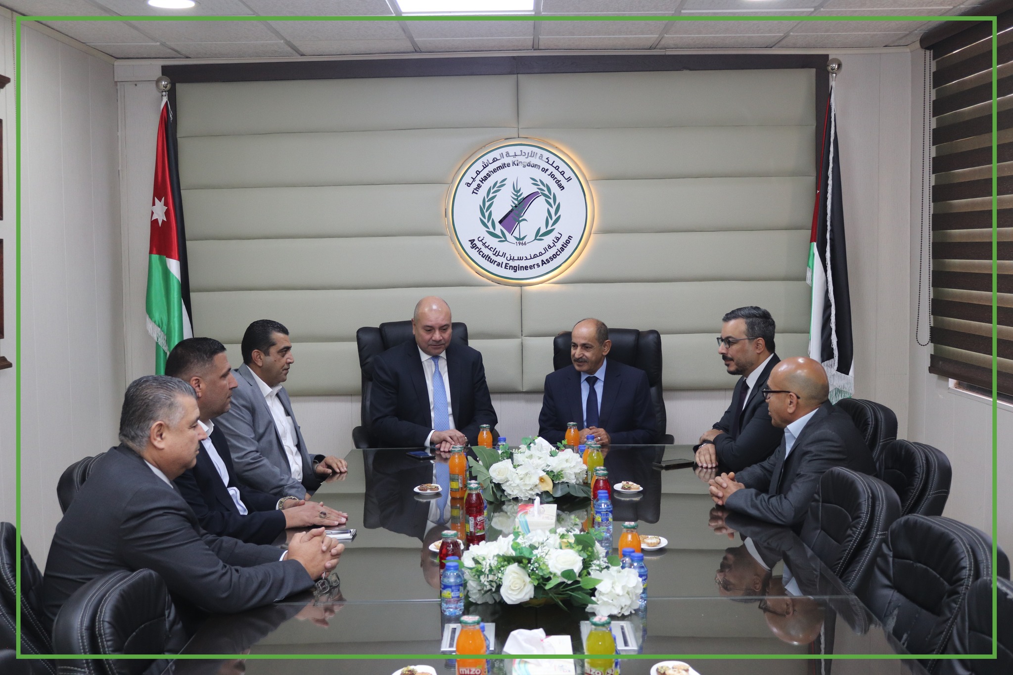 عمون - زار وزير الشؤون السياسية والبرلمانية عبد المنعم العودات نقيب المهندسين الزراعيين المهندس علي أبو نقطة بحضور نائبه المهندس شادي القيسي وأمين سر المجلس الدكتور إبراهيم الهبارنة وأمين الصندوق الدكتور محمد اللالا وأمين عام النقابة المهندس عمر الفقيه للتهنئة بفوز المجلس السادس والعشرين بالتزكية. |