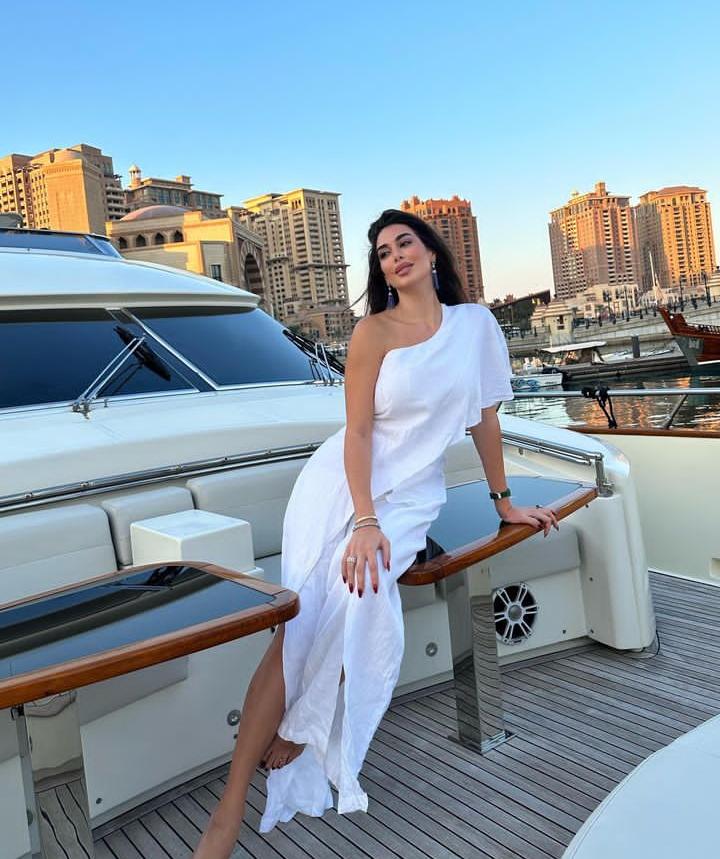 لفتت لجين عضاضة الأنظار بإطلالة صيفية بثوب ضيّق بتدرجات الأزرق الباستيل. هذا الأسلوب مثالي لسهرات الإجازة أو دعوات العشاء الأنيقة.