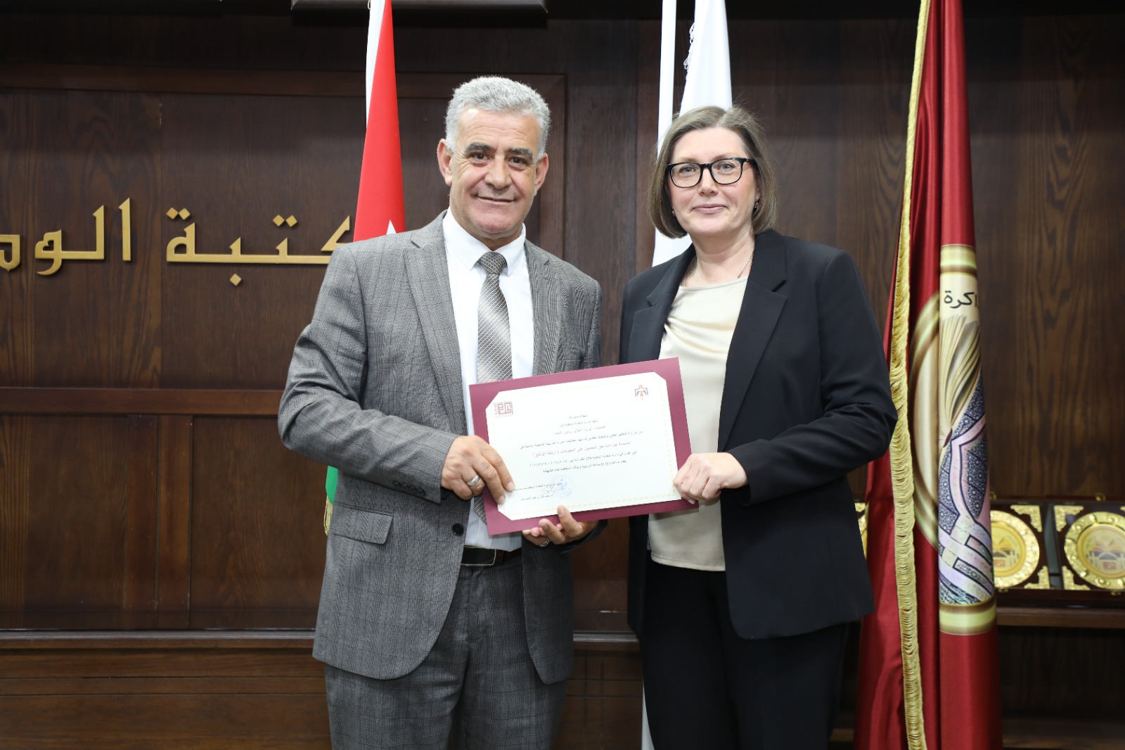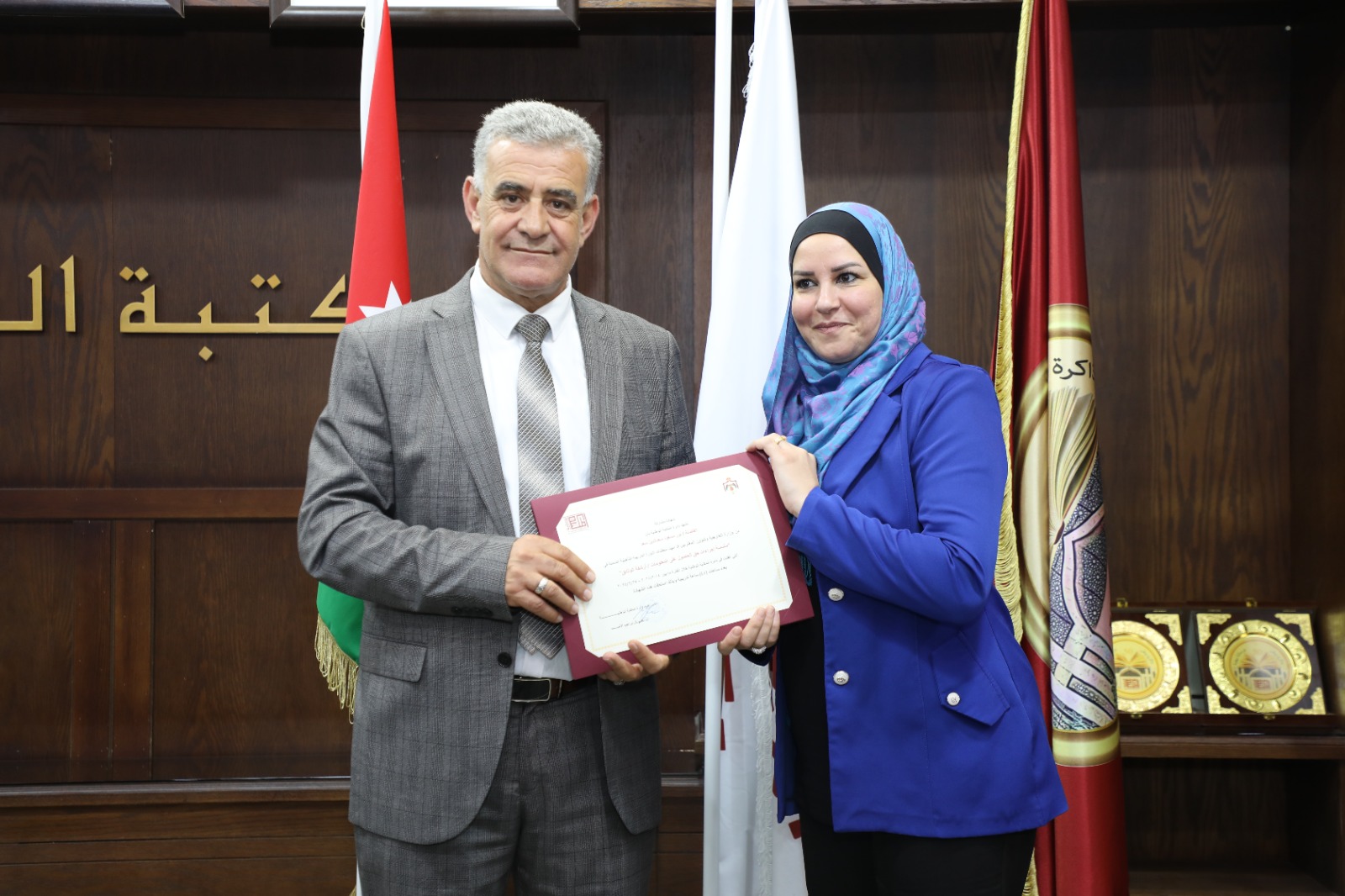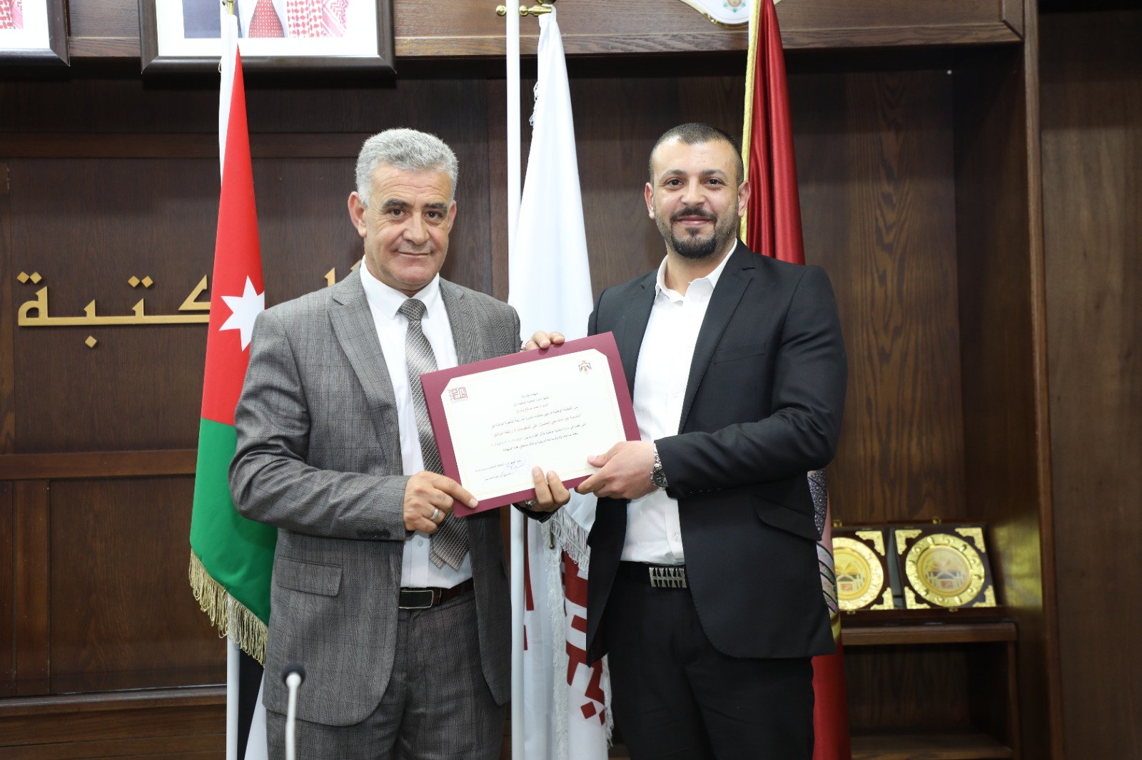 وفي نهاية الاحتفال قام د.العياصرة بتقديم دروع تكريمية لأعضاء الهيئة التدريبية وتوزيع الشهادات على المتدربين.
