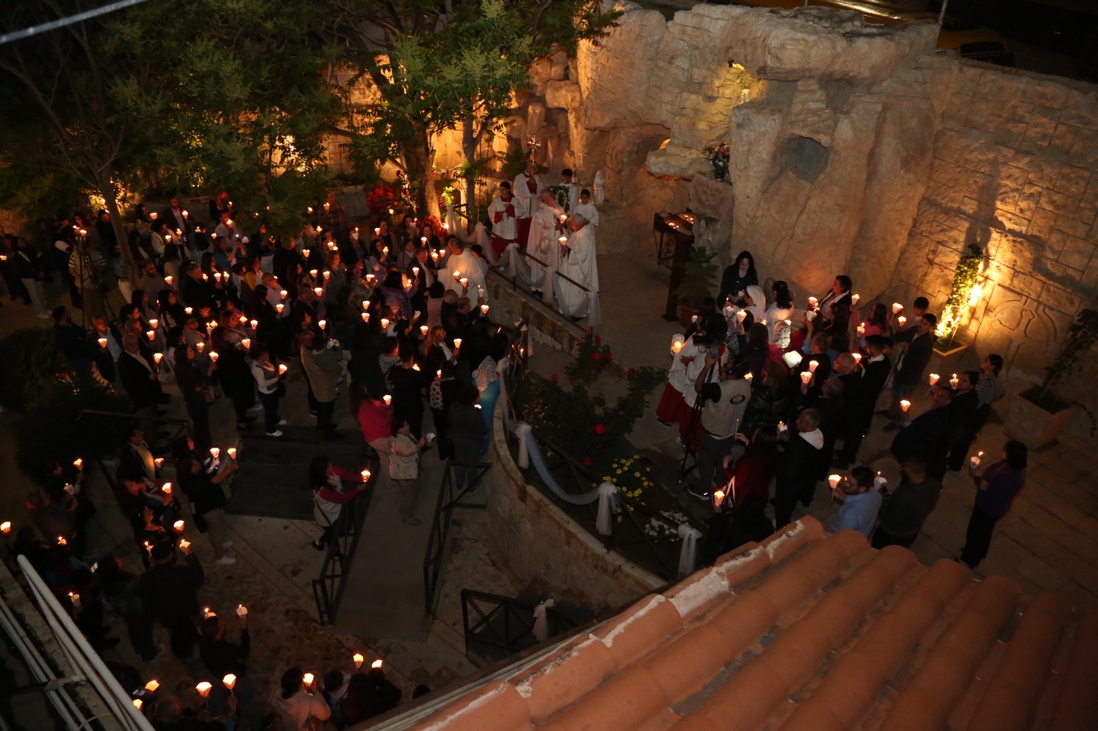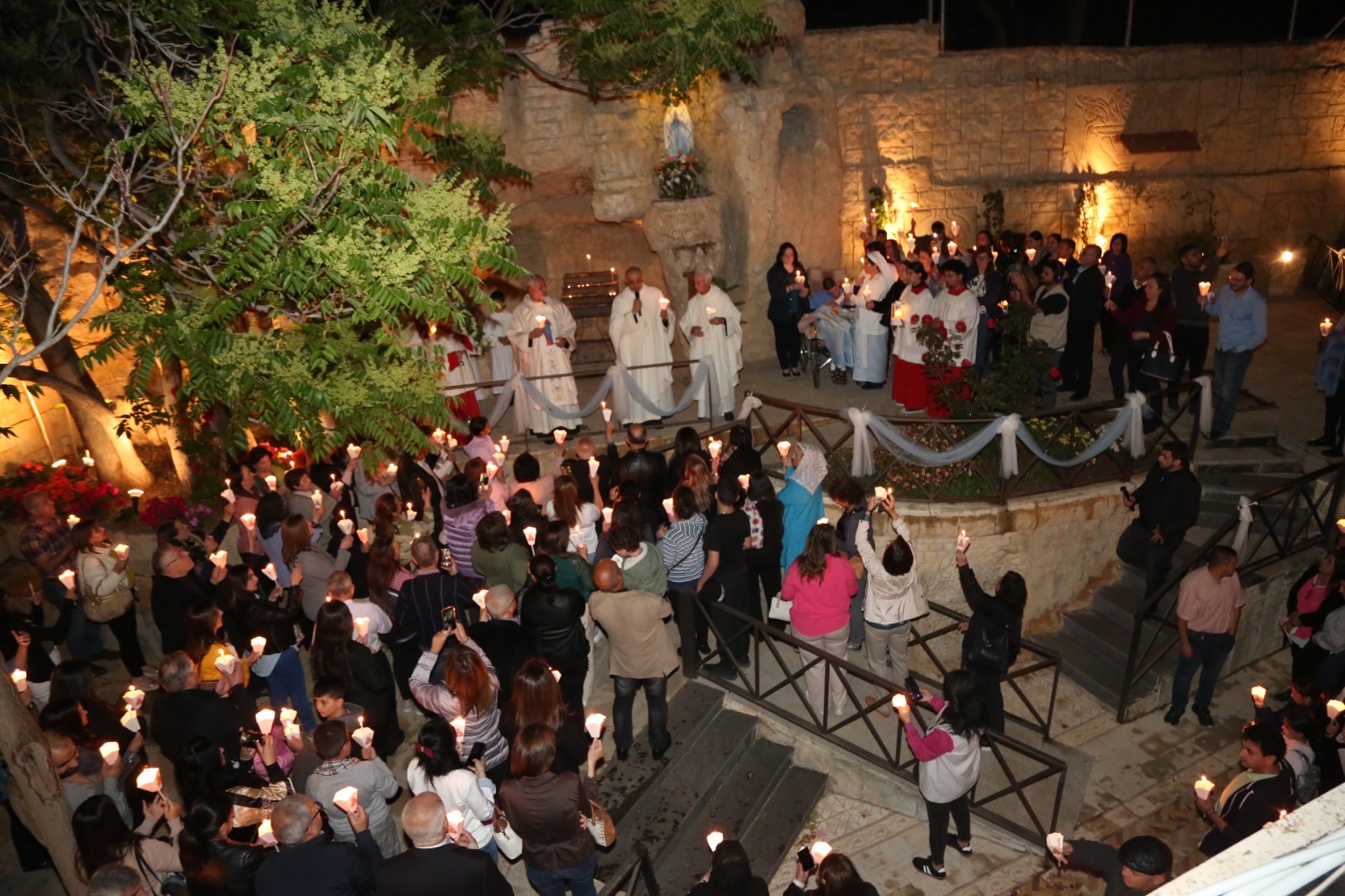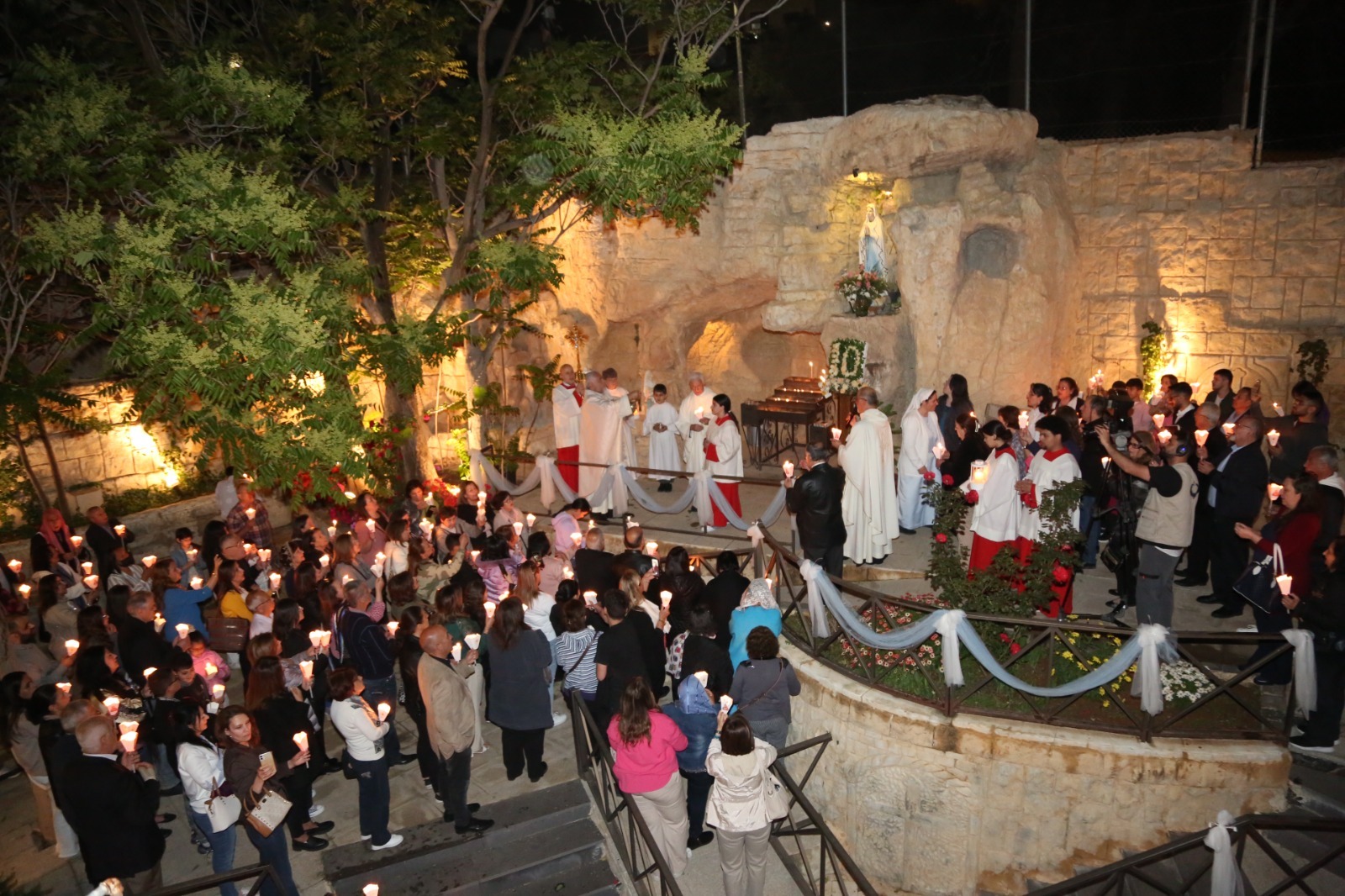 وأقيمت دورة الشموع التقليدية في المزار حيث تعتبر من الأمور التي يستخدمها المؤمنون يومياً في مزار لورد – فرنسا ورنموا معاً ترتيلة السلام السلام لك يا مريم.