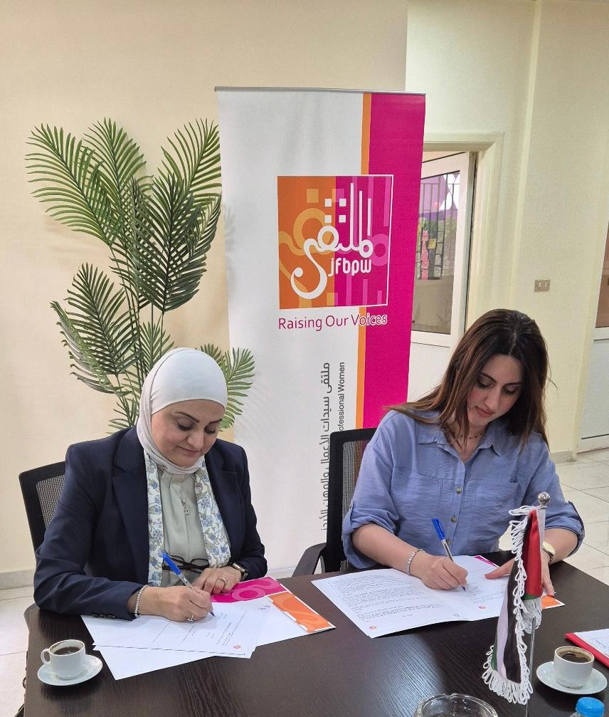 عمون - وقع ملتقى سيدات الأعمال والمهن الأردني مذكرة تفاهم مع شركة النطاق لتنظيم المعارض والمؤتمرات يوم الاثنين، للتعاون ولمشاركة الملتقى الفخرية في منتدى الأردن للأعمال 2025، والذي سيقام في ارض المعارض - مكة مول بتاريخ ٢١-٢٢ ايار ٢٠٢٥. |