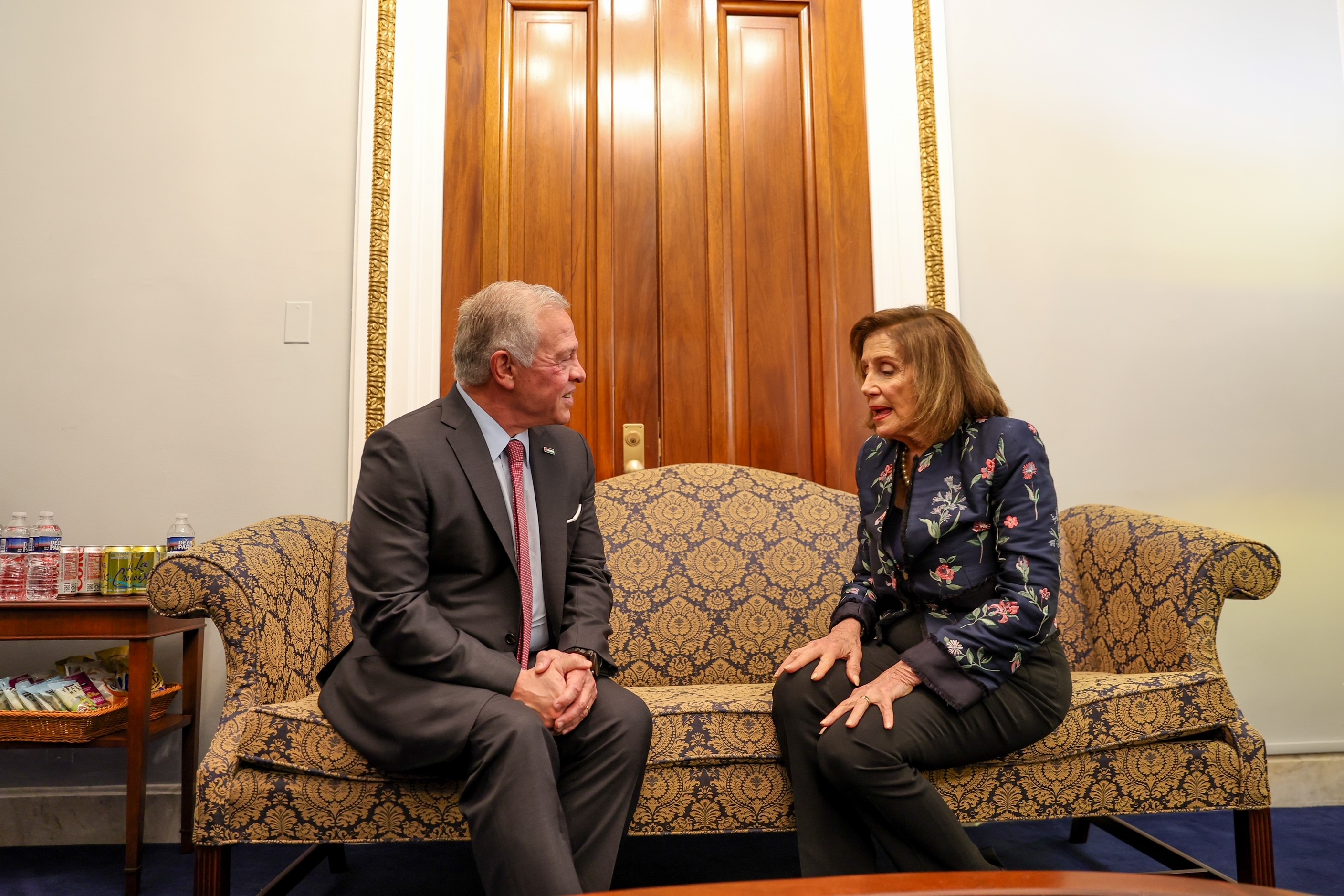 عمون - التقى جلالة الملك عبدالله الثاني مع رئيسة مجلس النواب الأمريكي السابقة نانسي بيلوسي، في واشنطن. |