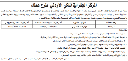 عطاء شراء ماسح ضوئي للمركز الجغرافي الملكي الاردني