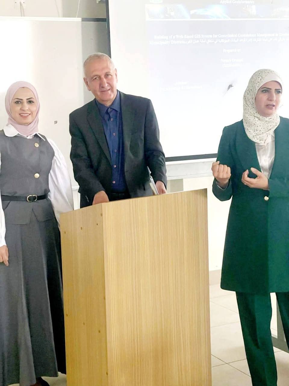 وقدّمت المهندسة نعمة عريقات خلال اليوم الأول من الورشة جلسة تدريبية موسعة، تضمنت مقدمة شاملة عن نظم المعلومات الجغرافية، ومكوناتها الأساسية، إلى جانب استعراض استخداماتها المتعددة في مجالات مثل شبكات المياه، تخطيط الطرق، إدارة الكوارث، والمسح العقاري. كما شرحت الفروقات بين نظم GIS وبرامج التصميم الهندسي مثل AutoCAD، وقدّمت تدريبًا عمليًا أوليًا على إدخال وتحليل البيانات الجغرافية باستخدام أدوات الخرائط الطبقية، وسط تفاعل مميز من الطلبة.