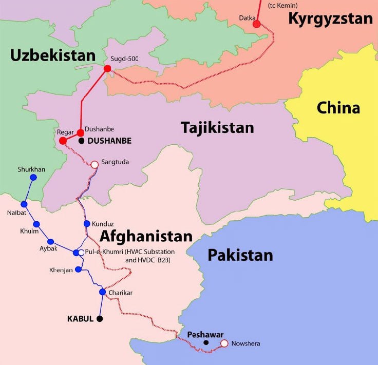 تكتسب مشاريع الطاقة، مثل مشروعي CASA-1000 و TAPI ، الهادفتين إلى تلبية احتياجات جنوب آسيا من الطاقة وتنويع مسارات التصدير في آسيا الوسطى، أهميةً بالغة. ويهدف مشروع TAPI تحديدًا إلى نقل 33 مليار متر مكعب من الغاز سنويًا من تركمانستان عبر أفغانستان وباكستان إلى الهند. ويحظى تنفيذه بدعم من مستثمرين دوليين، منهم بنك التنمية الآسيوي، بالإضافة إلى شركات طاقة كبرى مثل غازبروم وشيفرون وإكسون موبيل.