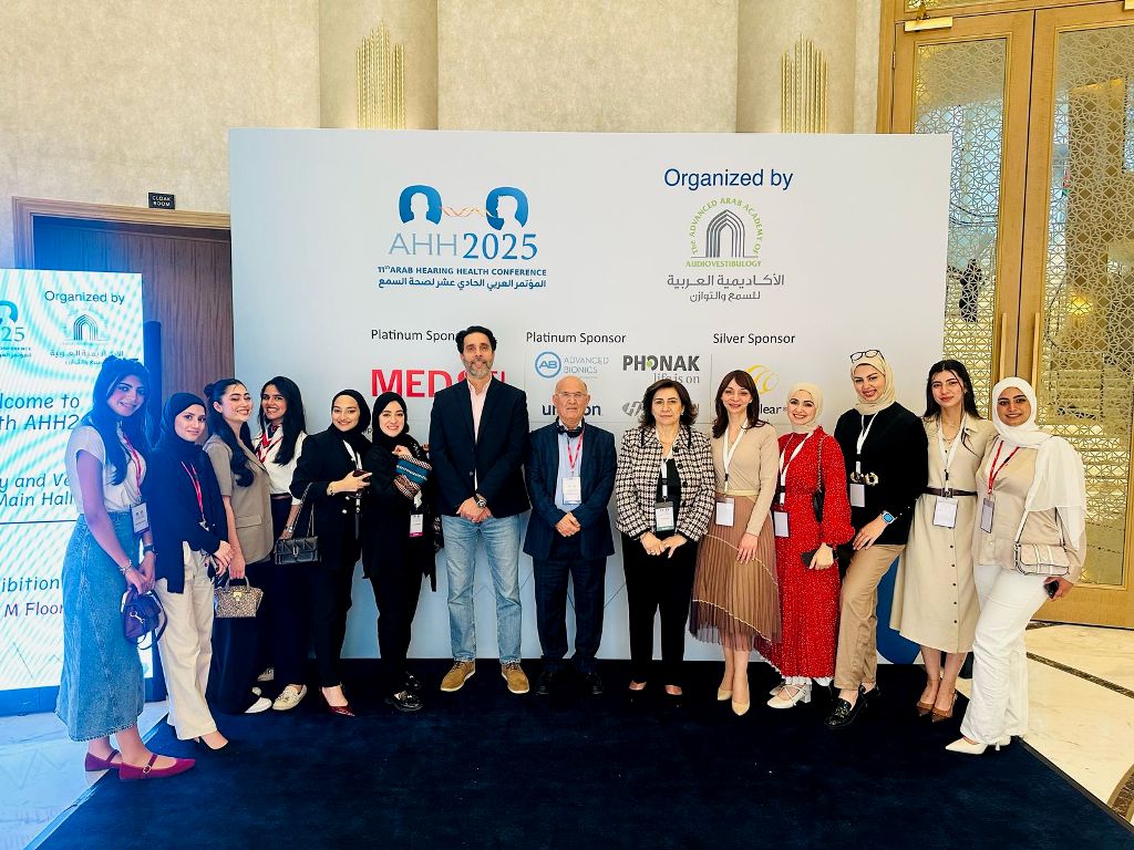 وشارك الدكتور زيدان الخمايسة من قسم السمع والنطق بورشة متخصصة حول "أساليب استرجاع الصوت بعد استئصال الحنجرة"، كما قدّمت المدرسة ليلى قنواتي رئيس قسم معالجة النطق واللغة والمدرسة راما الأسير ورقة عمل تم نشرها بمجلة مرموقة بعنوان "مستوى الوعي بصحة الأذن وضعف السمع في الأردن".