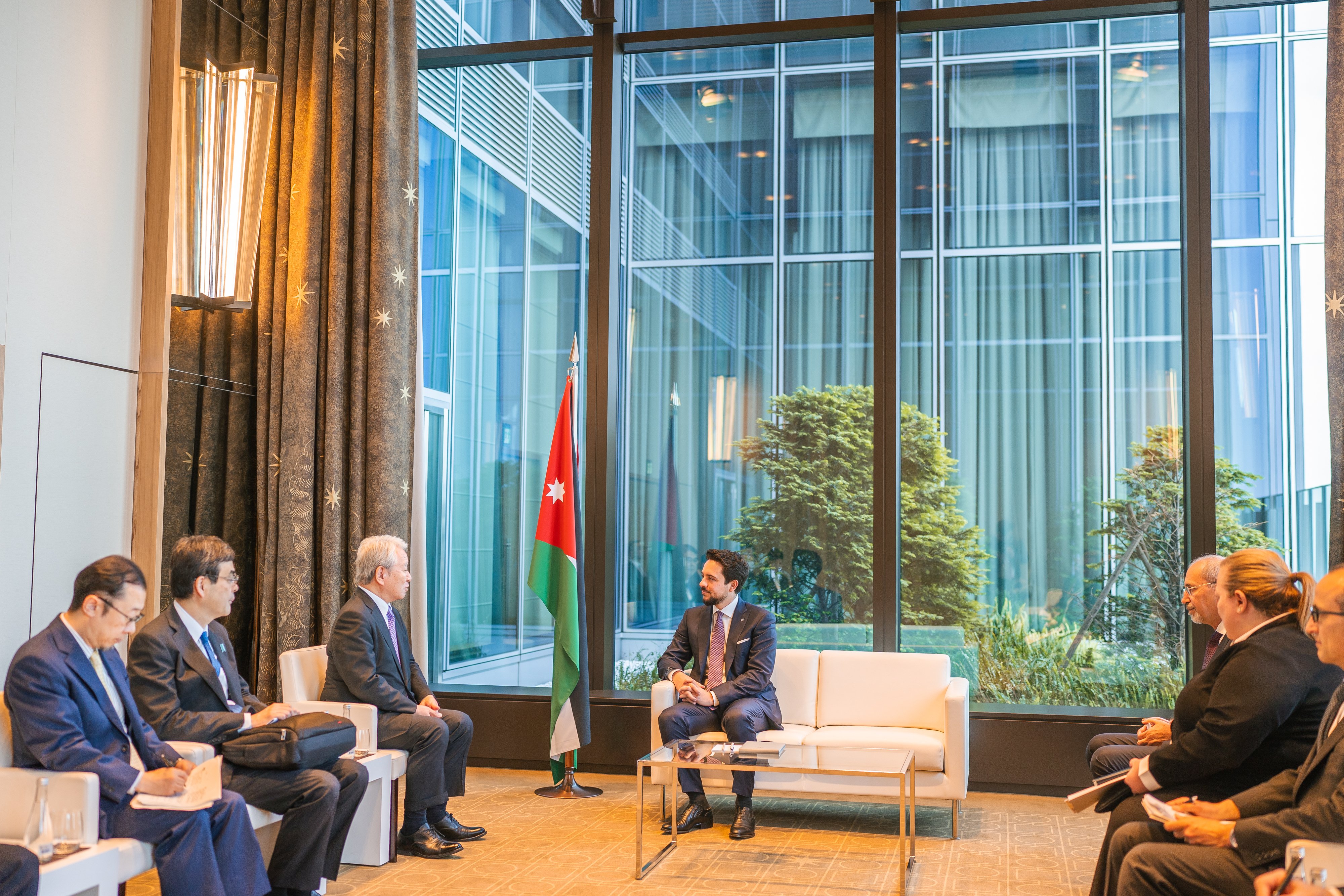 عمون - بحث سمو الأمير الحسين بن عبدالله الثاني ولي العهد مع رئيس الوكالة اليابانية للتعاون الدولي (جايكا) الدكتور أكيهيكو تاناكا لدى لقائهما في طوكيو، اليوم الخميس، آليات توسيع التعاون في المجالات الاقتصادية والتنموية. |