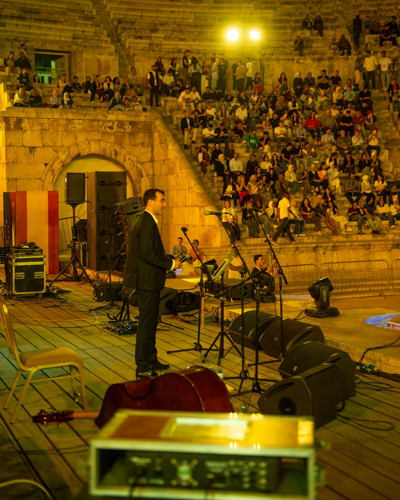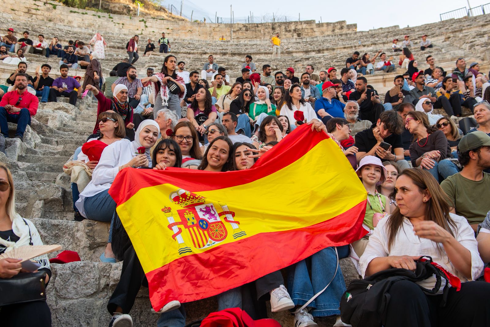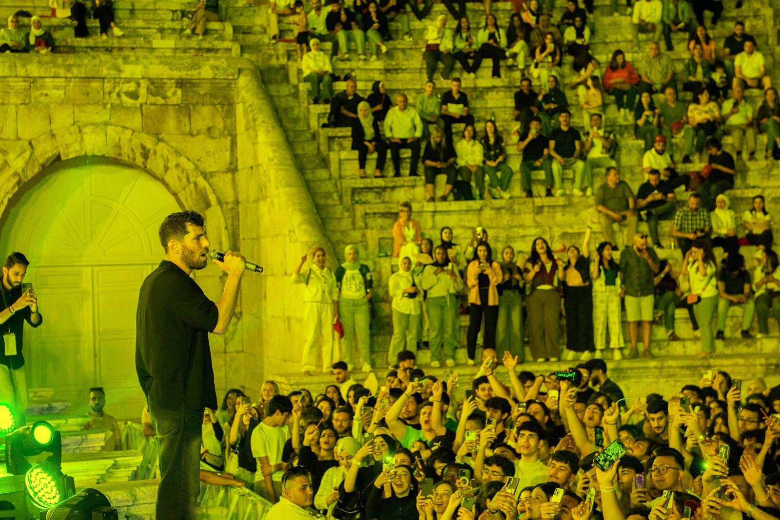 وقد امتلأت مدرجات هذا المعلم الأثري العريق بآلاف الحضور الذين توافدوا للاستمتاع بأمسية من العروض الموسيقية العالمية المبهرة. إذ أشعل الفنان الأردني عزيز مرقة المسرح بأغانيه الحماسية، فيما قدّمت فرقة لوس مانولوس الإسبانية عرضًا مليئًا بالطاقة والروح المتوسطية، بينما أبهرت فرقة عروة صالح القادمة من النمسا، بمشاركة الفنانة زينة أفثيموس، الجمهور بأدائها الموسيقي الساحر والعميق.