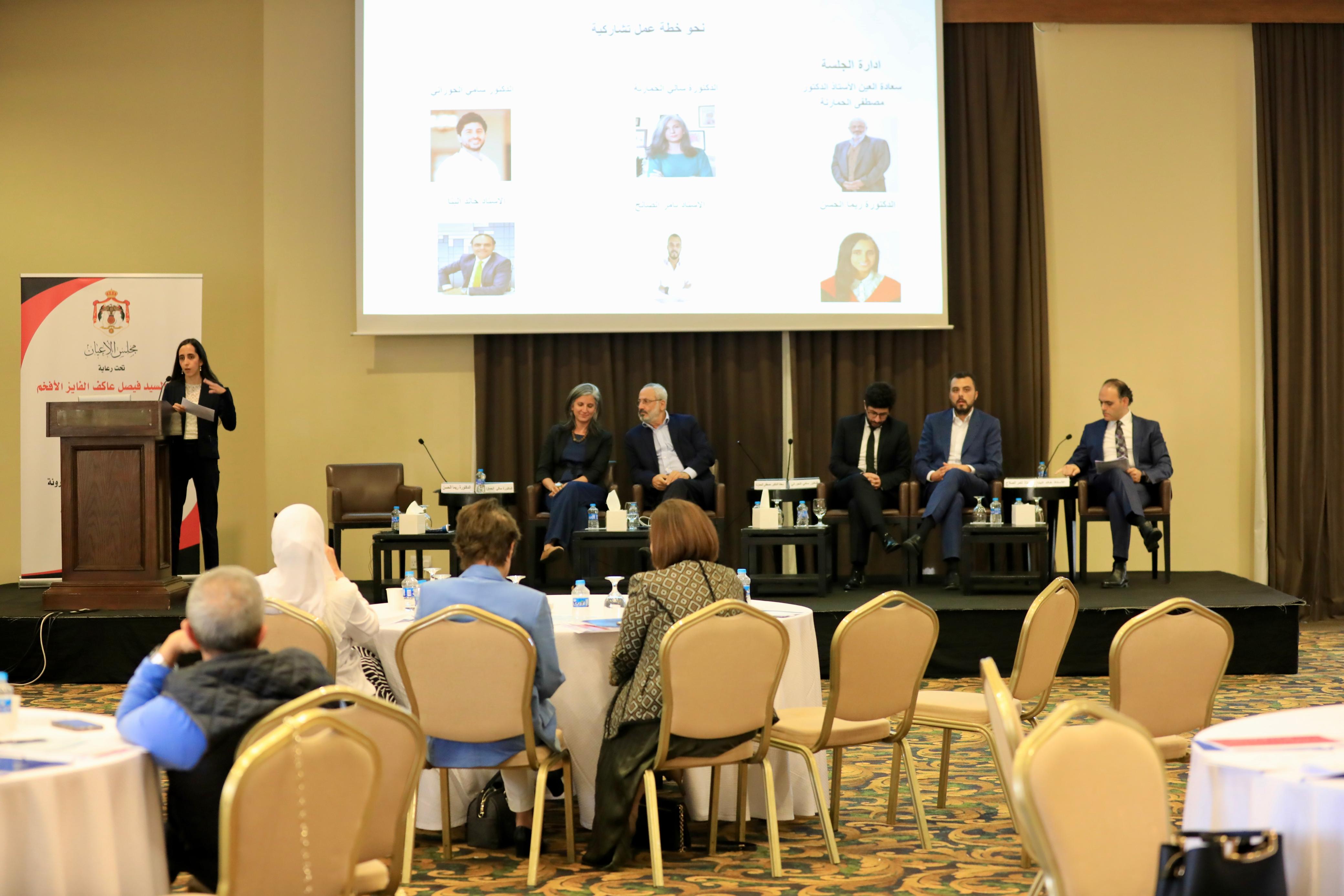 وخصصت الجلسة الختامية، التي أدارها رئيس لجنة الخدمات العامة في مجلس الأعيان الدكتور مصطفى الحمارنة، بمشاركة الدكتورة ريما الحسن، والدكتورة سالي الحمارنة، والدكتور سامي الحوراني، وخالد البنا، لعرض التوصيات ومناقشة الخطوات المستقبلية.