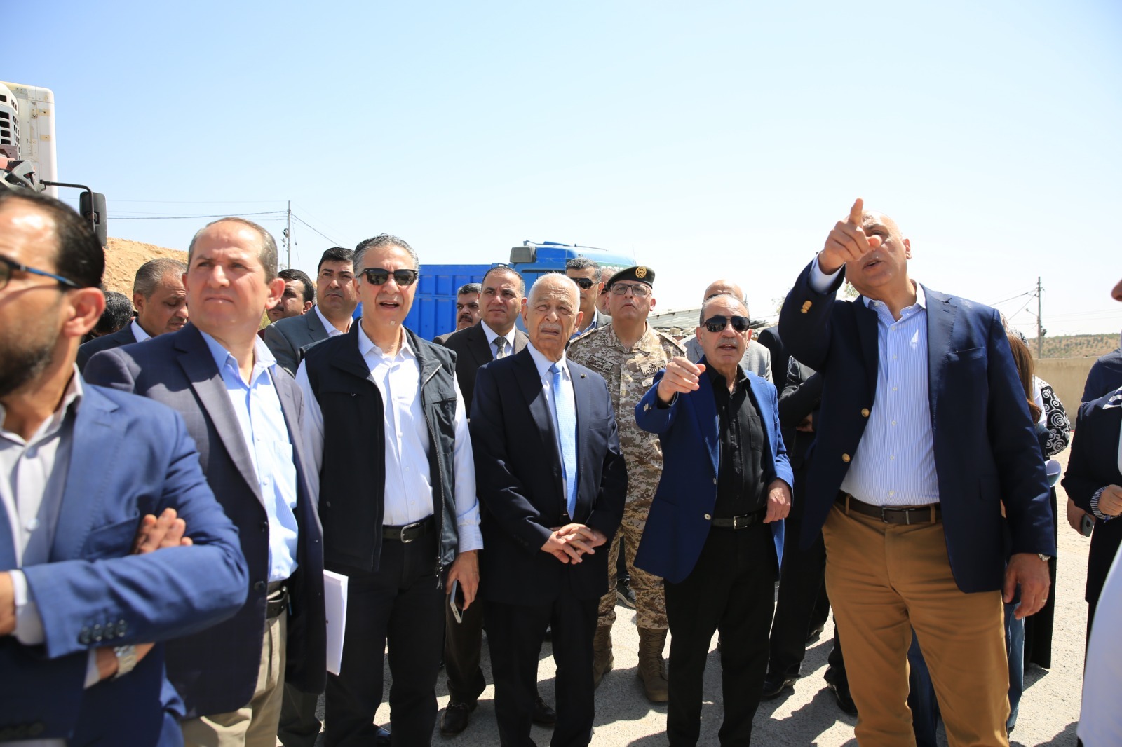 عمون - تفقد رئيس الديوان الملكي الهاشمي، يوسف حسن العيسوي، رئيس لجنة متابعة تنفيذ مبادرات جلالة الملك، اليوم السبت، سير العمل في تنفيذ مشاريع المبادرة الملكية لإعادة تأهيل وتطوير منطقتي تلال الفوسفات (المرحلة الثانية) ووادي العش، وذلك بحضور وزراء الإدارة المحلية المهندس وليد المصري، والزراعة المهندس خالد الحنيفات، والصناعة والتجارة المهندس يعرب القضاة، والبيئة الدكتور معاوية الردايدة، ومحافظ الزرقاء الدكتور فراس أبو قاعود، ومدير الإدارة الملكية لحماية البيئة العميد تامبي حمكري، ورئيس غرفة صناعة الزرقاء فارس حمودة، ورئيس بلدية الرصيفة شادي الزيناتي، ونائب رئيس بلدية الزرقاء فتحي الخلايلة.