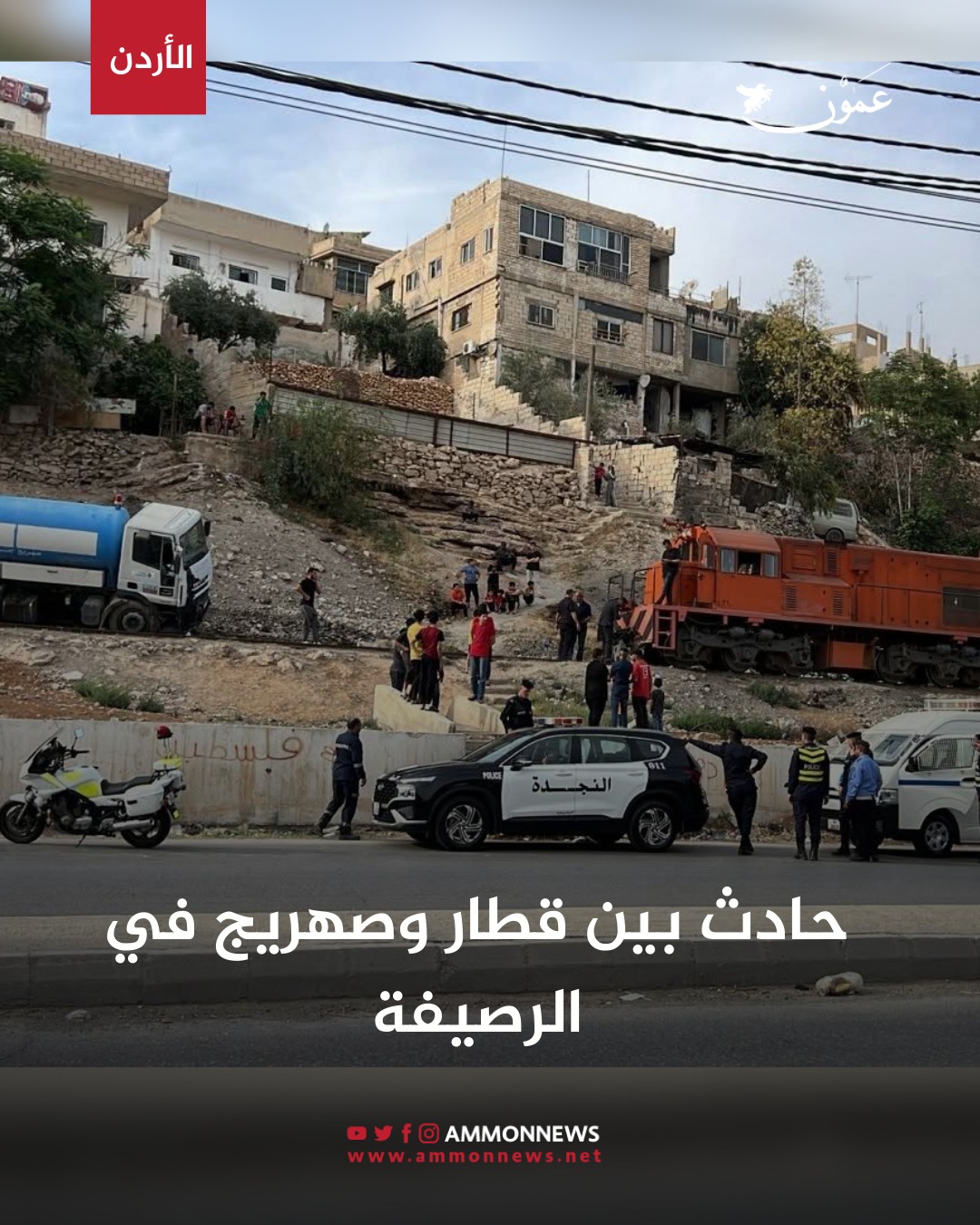 تصادم بين صهريج وقطار سكة الحجازي في الرصيفة