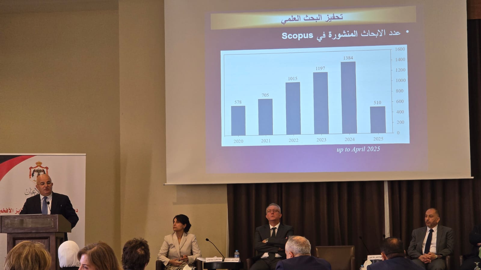 كما استعرض الدكتور الحياري النجاحات التي حققتها الجامعة الهاشمية في مجال الأبحاث العلمية، مشيرًا إلى ما تحقق من تقدم ملحوظ في عدد ونوعية الأبحاث المنشورة، والزيادة المضطردة في المشاركة في المؤتمرات العلمية العالمية، والحضور المميز في المجلات العالمية المرموقة، والارتفاع الكبير في نسبة الاقتباسات والاسشهاد لباحثي الجامعة، اضافة لتوطيد التعاون البحثي مع مؤسسات محلية ودولية، ما هو الا جهد مؤسسي مشترك تفخر الجامعة به، ساهم في تعزيز مكاننها على المستويين الوطني والدولي، وحقق نتائج بارزة على مختلف الأصعدة الأكاديمية والبحثية، وسجل العديد من براءات الاختراع العالمية الهامة، التي قدم فيها العديد من الحلول المبتكرة، ووفرت تقنيات جديدة في العديد من المجالات.