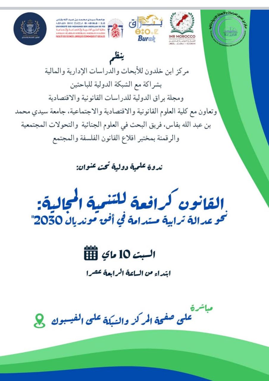 عمون - في تظاهرة فكرية من الطراز الرفيع، احتضنت جامعة سيدي محمد بن عبد الله بفاس الندوة الدولية الموسومة بعنوان:"القانون كرافعة للتنمية المجالية: نحو عدالة ترابية مستدامة في أفق مونديال 2030"،والتي نظّمها مركز ابن خلدون للأبحاث والدراسات الإدارية والمالية والشبكة الدولية للأبحاث والدراسات، بشراكة مع ثلة من الهيئات الوطنية والدولية، وبحضور نخبة من الشخصيات الأكاديمية والبحثية من مختلف الدول العربية والأجنبية.
