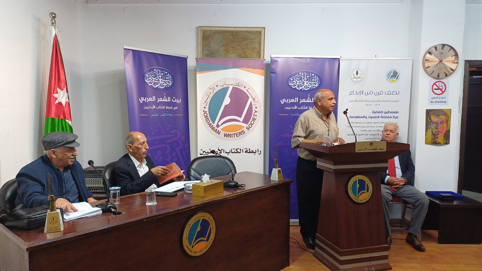 واستهل القراءات الشعرية الشاعر موسى الكسواني، الذي بدأ بقصيدتين وطنيتين من شعر التفعيلة؛ الأولى بعنوان "غزة"، ومطلعها: "لغزة أن تستبيح الحديث، ولغزة أن نشتهيها كما يشتهيها الظلم"، فيما الثانية جاءت بعنوان "الرقص"، واستحضرت ما تعانيه غزة من آلام.