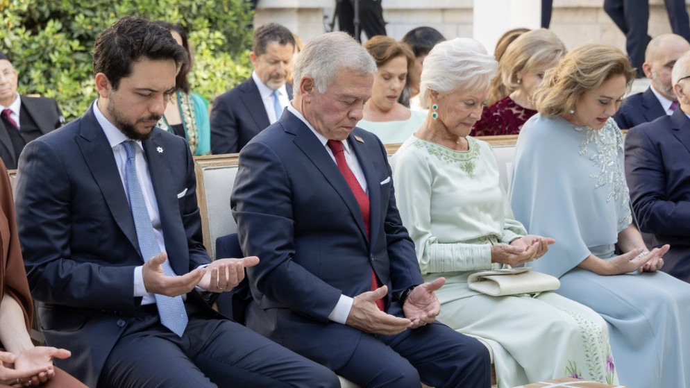 عمون - بحضور جلالة الملك عبدالله الثاني، وأصحاب السمو الملكي الأمير الحسين بن عبدالله الثاني ولي العهد، والأمير الحسن بن طلال، والأمير هاشم بن عبدالله الثاني، والأمير فيصل بن الحسين، تم عقد قران سمو الأميرة عائشة بنت فيصل بن الحسين على كريم المفتي. |