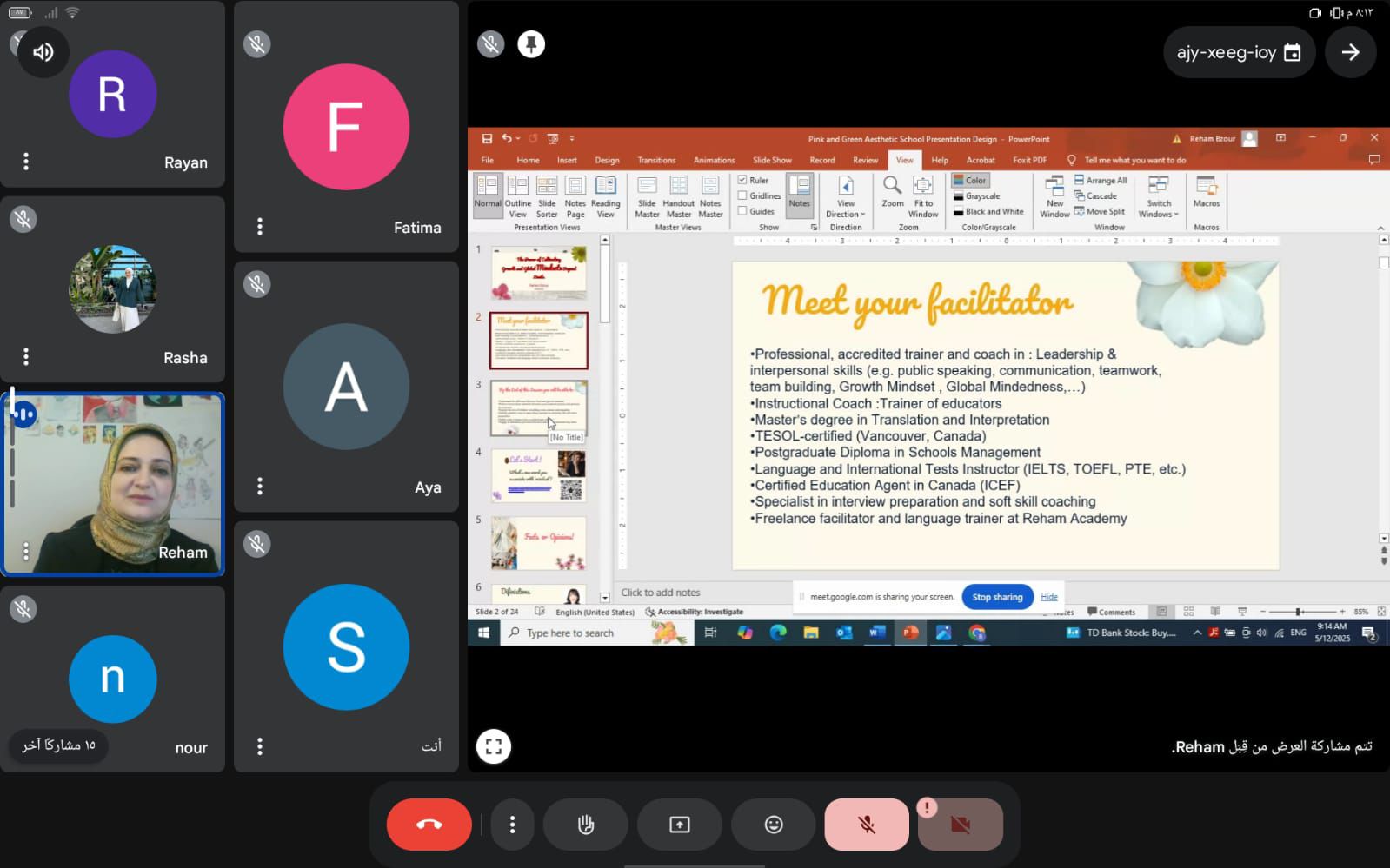 عمون - ضمن سلسلة من الأنشطة التي تهدف إلى تعزيز التنمية الشخصية لدى الشباب الأردني وتمكينهم من بناء مستقبل مهني وشخصي ناجح، قائم على التطور المستمر والانفتاح الفكري، وفي إطار تعزيز الوعي الذاتي والمهارات الذهنية للطلبة، نَظّم فريق سفراء منصة "نَحْنُ" بالتعاون مع عمادة شؤون الطلبة في جامعة إربد الأهلية، ورشة تدريبية حملت عنوان "فن تنمية عقلية النمو والعقلية العالمية بلا حدود"،عبر تطبيق Google Meet قدمتها المدربة المتخصصة في التنمية الذاتية والقيادة رهام البزور، بحضور كل من الكابتن كمال المومني، ضابط ارتباط منصة "نَحْنُ"، وعدد من أعضاء فريق السفراء، إلى جانب طلبة من الجامعة ومشاركين من مؤسسات تعليمية ومجتمعية أخرى. |