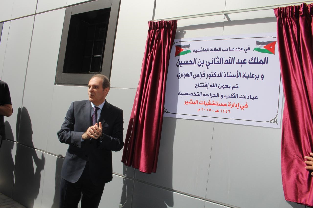 عمون - افتتح وزير الصحة الدكتور فراس الهواري اليوم الثلاثاء، عيادات القلب والجراحات التخصصية في مستشفيات البشير، في خطوة جديدة تؤكد التزام الوزارة المستمر بتطوير الخدمات الطبية المتخصصة وتوسيع نطاقها، بما يتناسب مع الزيادة المطردة بأعداد المرضى ورفع جودة الرعاية الصحية المقدمة في مرافق الوزارة.