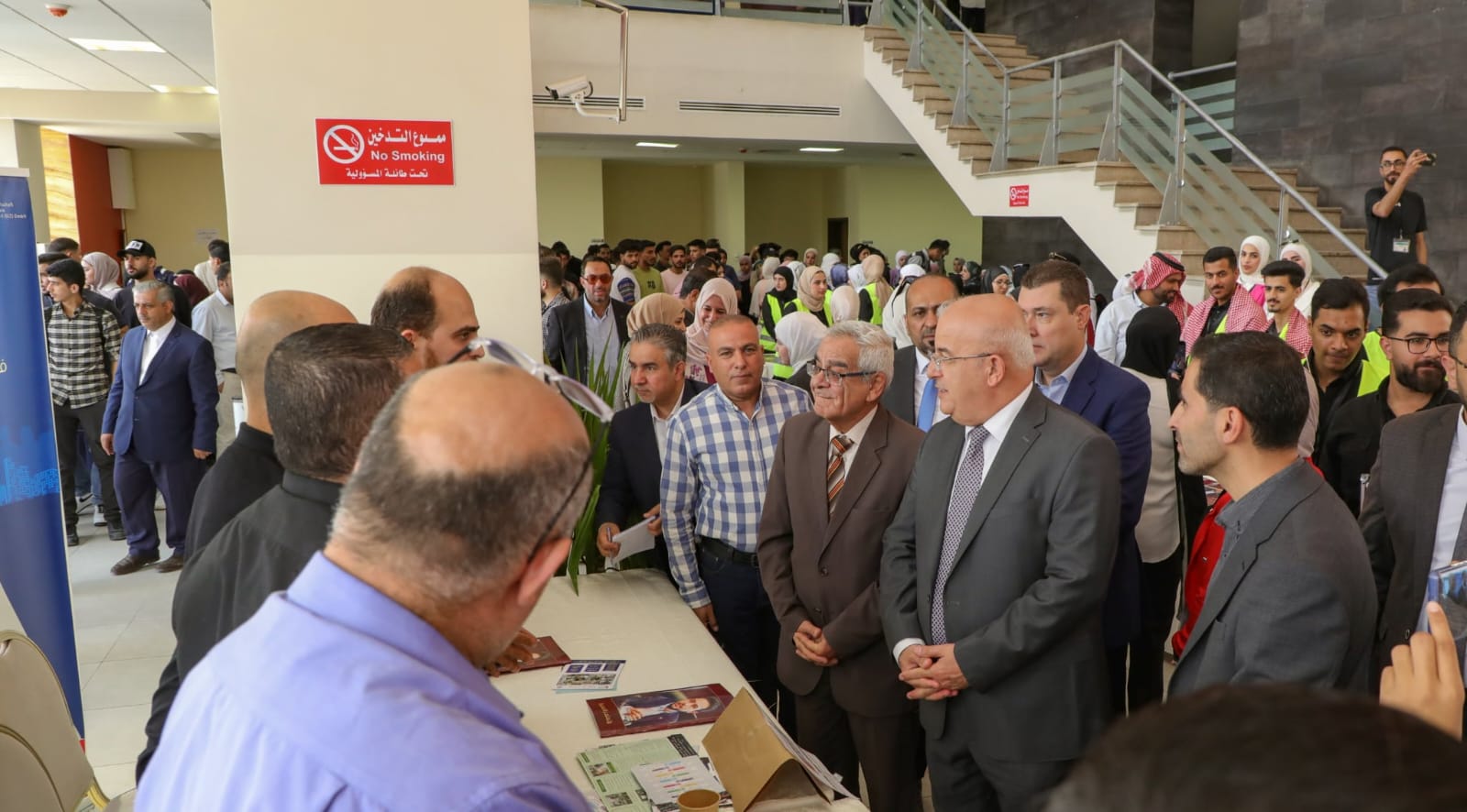 وتجوّل رئيس الجامعة في أركان اليوم الوظيفي، واطّلع على ما تقدّمه الجهات المشاركة من فرص التشغيل والتوظيف، والبرامج التدريبية، والزمالات المهنية، والقروض التمويلية للمشاريع الريادية، ومبادرات تمكين المرأة والشباب، وما توفره مؤسسات التمويل لرواد الأعمال من دعم من خلال تمويل مشاريعهم الإنتاجية والتجارية والحرفية، وما توفره المؤسسات الأخرى في بناء المسارات المهنية.