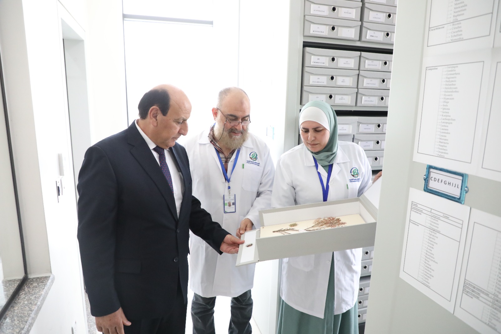 عمون - تفقد مدير عام المركز الوطني للبحوث الزراعية الدكتور ابراهيم محمد الرواشدة سير العمل في بنك البذور الوطني حيث اطلع على اقسام بنك البذور المختلفة، مختبر إستقبال وتحضير العينات، مختبر الانبات فسيولوجيا النبات، مختبر صحة البذور، مختبر تجهيز وتنظيف البذور، مختبر تحضير البيئات، مختبر DNA، المعشب النباتي، مختبر حفظ فائق الامد (الحفظ بالسائل النيتروجيني)، غرف تجفيف البذور، غرفة الحفظ طويل وقصير الأمد، حقل توصيف واكثار لمدخلات بنك البذور.