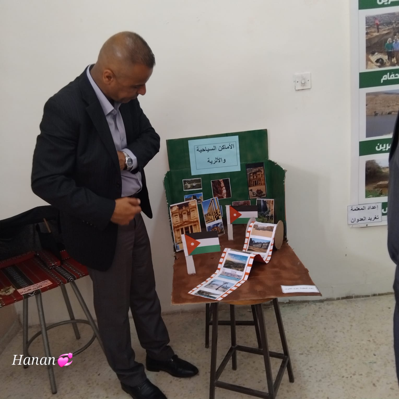 وتابع د. هديرس زيارته بإفتتاح معرض التراث الشعبي واستعرض محتوياته، ومعرض الوسائل التعليمية وتجول في أركانه الذي اشتمل على وسائل تعليمية متنوعة، وتجارب علمية قدمت الطالبات خلالها عروضاً لنماذج، ومجسمات ووسائل متعددة ومتنوعة في جميع التخصصات العلمية، بالإضافة إلى ركن لإعادة التدوير والأعمال اليدوية، وركناً للتراث الشعبي والأشغال اليدوية، وعرضاً تقديمياً لأنشطة الطالبات خلال العام الدراسي.