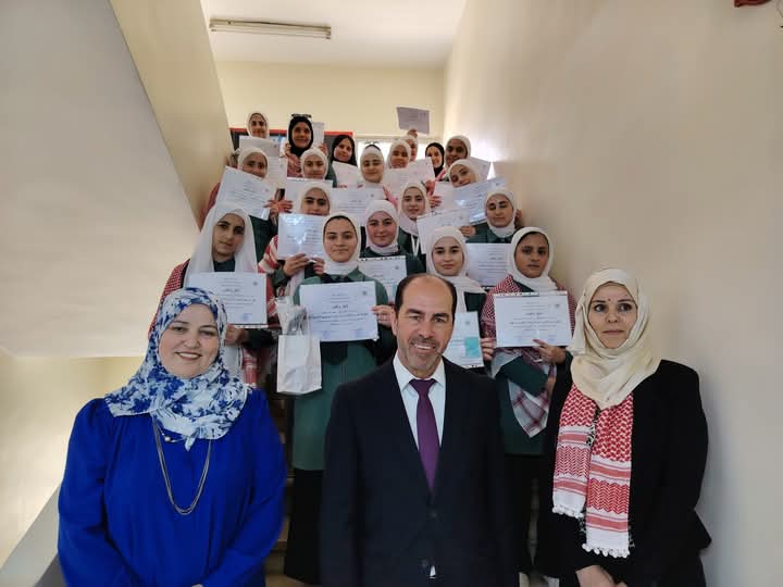 وفي الختام كرم الحوامدة المشاركين بالماراثون ونخبة من معلمات الزهراء تقديرا لجهودهن في الميدان ، كما كرم من المجتمع المحلي استبرق الخزاعلة لمشاركتها بتصميم مسابقة التدخلات العلاجية .