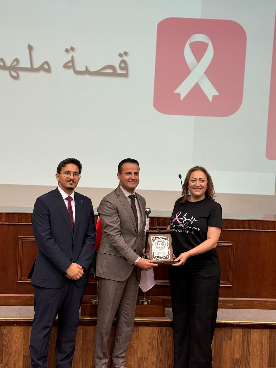 كما استُضيفت إحدى السيدات المتعافيات من سرطان الثدي، حيث شاركت قصتها الملهمة مع الحضور، متحدثة عن تجربتها الشخصية في مواجهة المرض والتعافي منه، مما أضفى بُعدًا إنسانيًا مؤثرًا على الفعالية.
