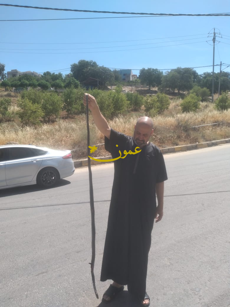 عمون - تمكن عمر طه المعروف بلقب "صائد الأفاعي"، اليوم الجمعة، من القضاء على أفعى ضخمة يقدر طولها لنحو المترين، بعد مطاردة واحترافية عالية. |