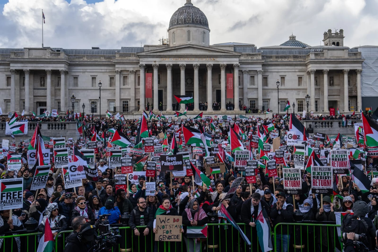 عشرات الآلاف يتظاهرون في لندن في الذكرى الـ77 للنكبة