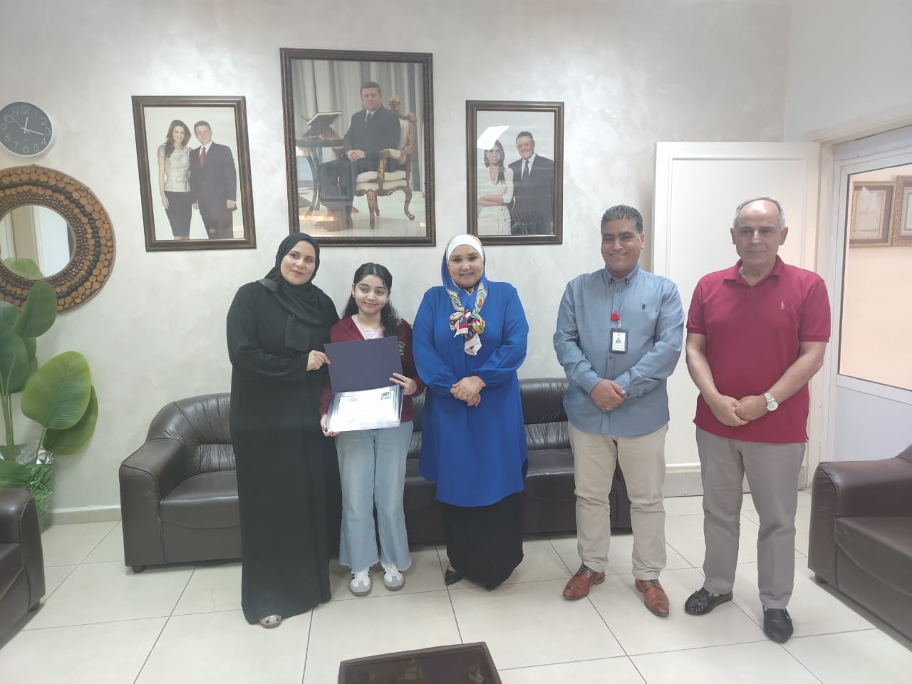 عمون - كرمت مديرة التربية والتعليم للواء بني عبيد السيدة نسرين البكار، اليوم الأحد، الطالبات الفائزات بمسابقة "اقرأ وارتق" بدورتها الخامسة،بحضور رئيس قسم النشاطات التربوية الدكتور عاصم العمري، ومسؤول النشاط الثقافي في المديرية.