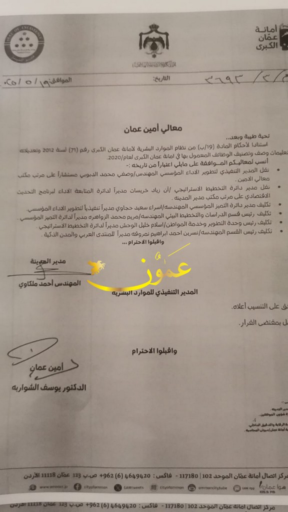 تنقلات وتكليفات لكبار الموظفين في امانة عمان (أسماء)