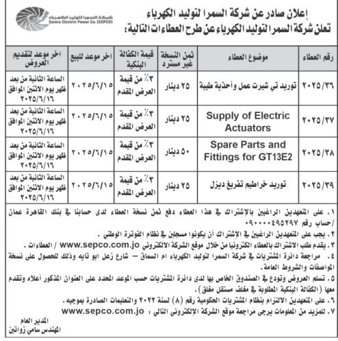 عطاءات صادرة عن شركة السمرا لتوليد الكهرباء