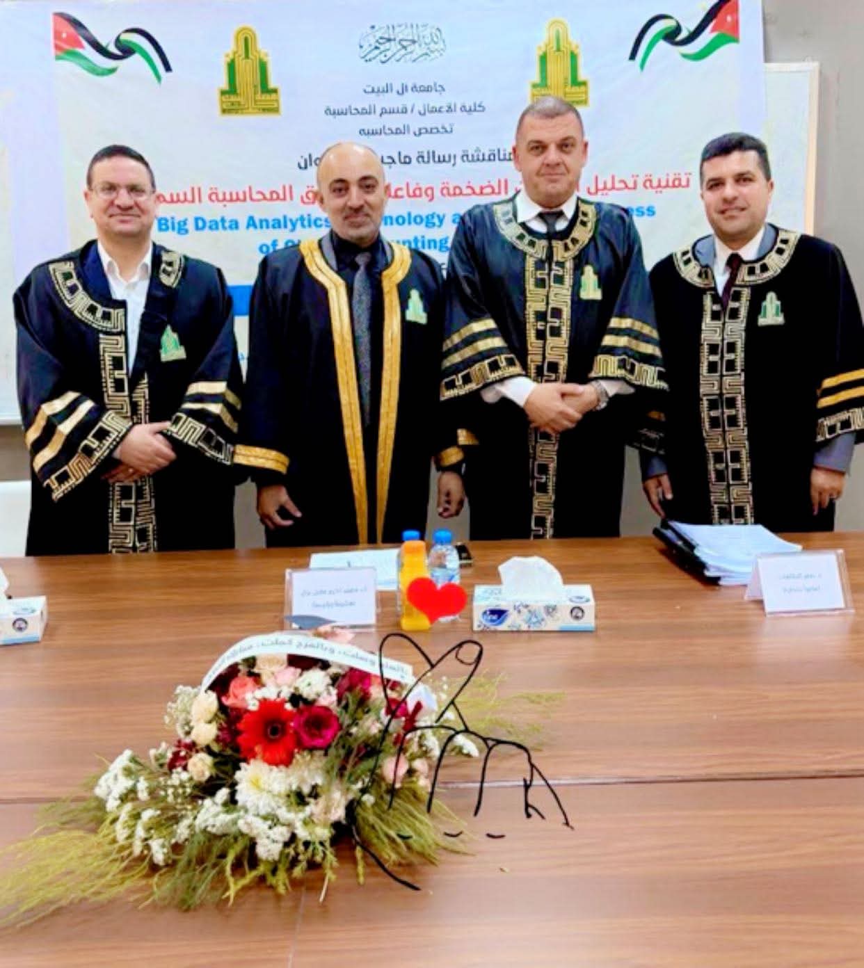 عمون - يتقدم محمد الجلايله ابو ايثار من الصديق والاخ مالك ملكاوي بمناسبه مناقشه رساله الماجستير بعنوان تقنيه تحليل البيانات الضخمه على فاعليه تطبيق المحاسبه السحابيه.