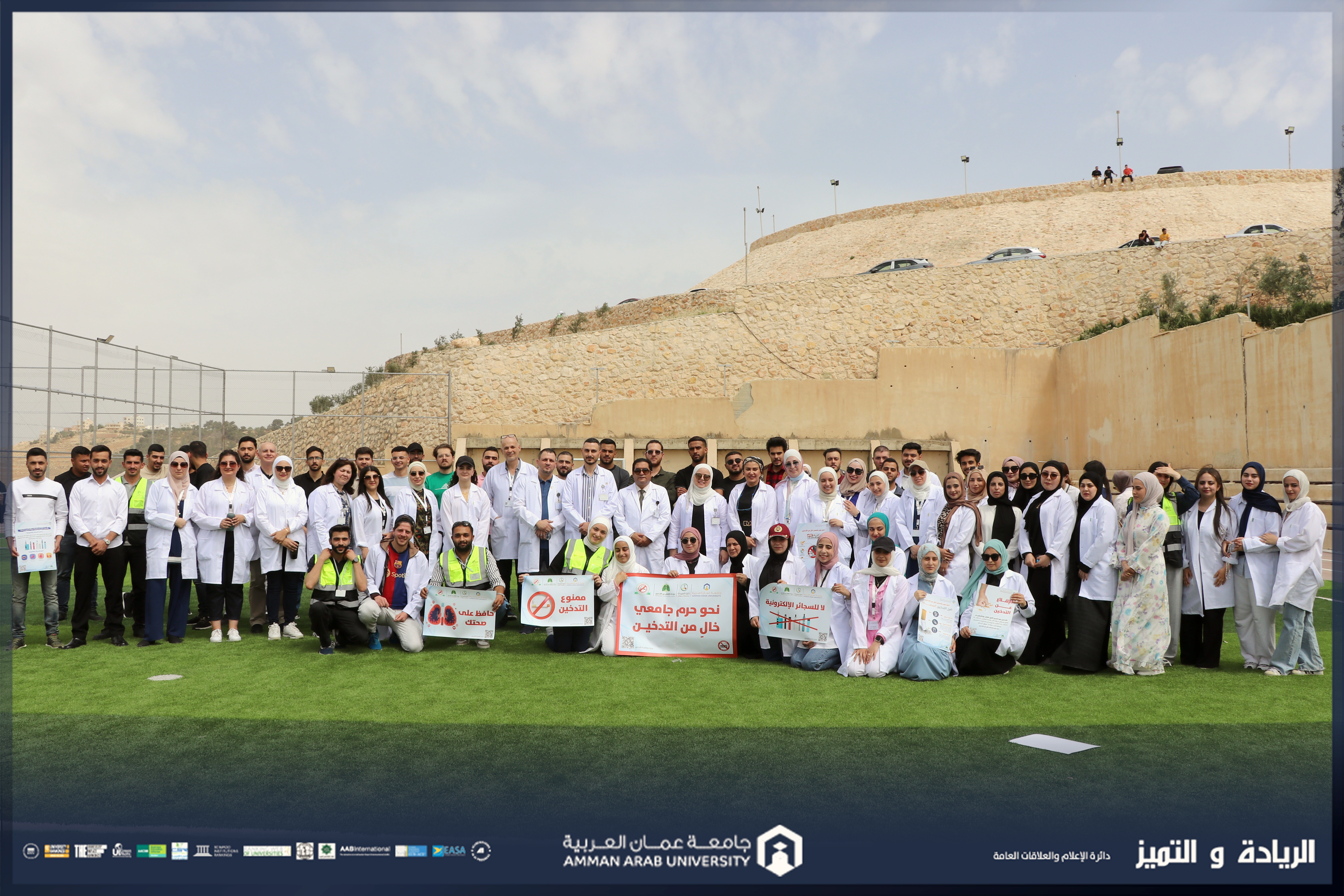 عمون - في إطار جهودها المستمرة لنشر الوعي الصحي بين طلبتها نظمت كلية الصيدلة في جامعة عمان العربية يومًا توعويًا رياضيًا تحت شعار "نحو حرم جامعي خالٍ من التدخين"، بمشاركة واسعة من طلبة الكلية وأعضاء الهيئتين التدريسية والإدارية.