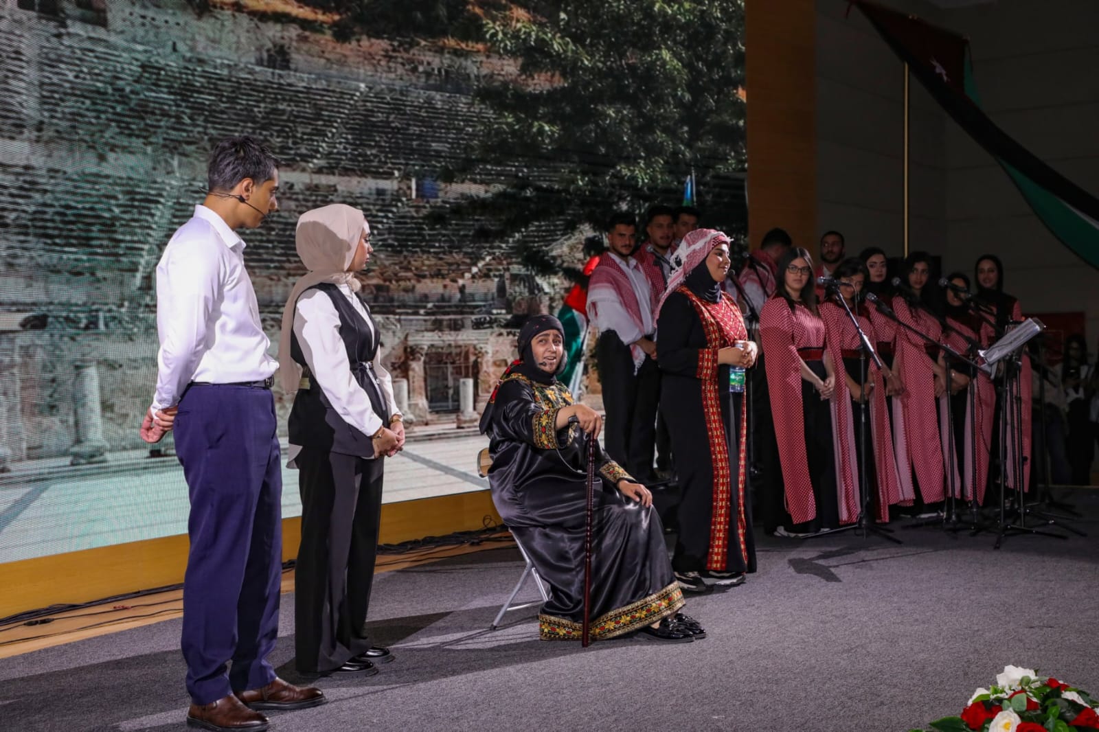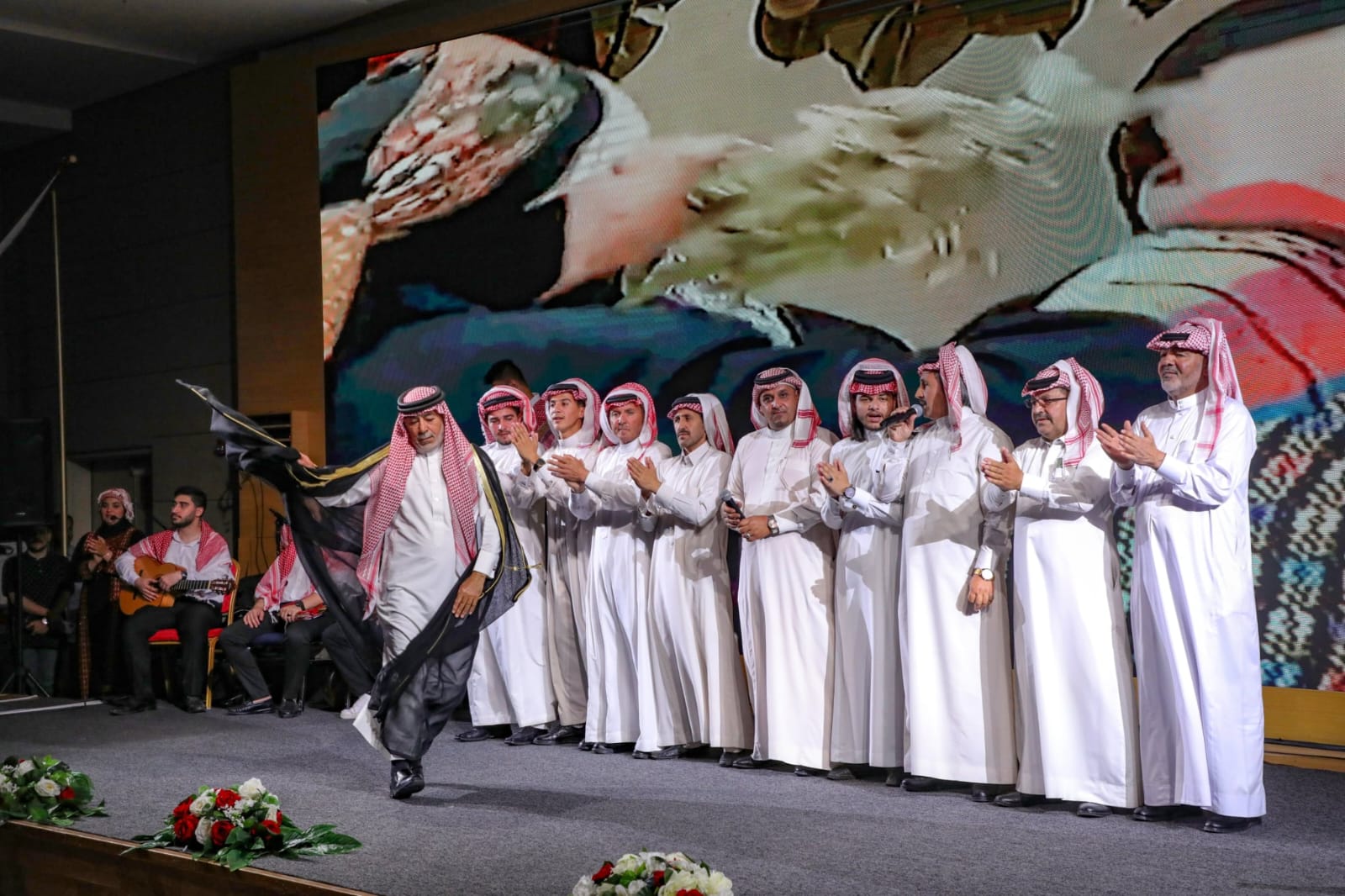 وشهد الحفل معرضًا للفن التشكيلي، حيث تألقت اللوحات الإبداعية بتجسيد خريطة الأردن، مبرزةً المعالم الجغرافية والتاريخية التي تزخر بها البلاد، ومجسدةً رموزًا وطنية تعكس هوية الأردن العريقة.