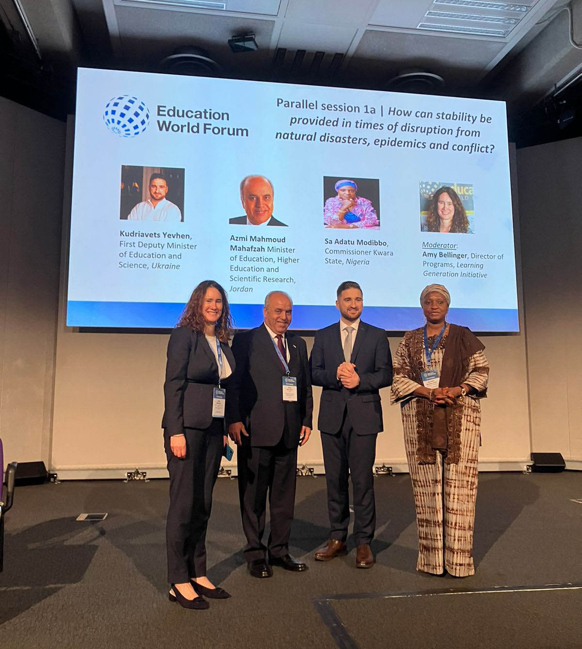 من جانبه، أعرب وزير التربية والتعليم السوري عن الشكر للجهود الأردنية في تقديم الخدمات التعليمية للطلبة السوريين خلال الأزمة، مبينًا أن الوزارة أعلنت خطة الاستجابة الطارئة بهدف تأمين مكان آمن لكل طفل سوري للتعليم، منوهًا أن حوالي 8000 مدرسة أو ما يشكل 40 بالمئة من المدارس السورية مدمرة وخارج الخدمة.