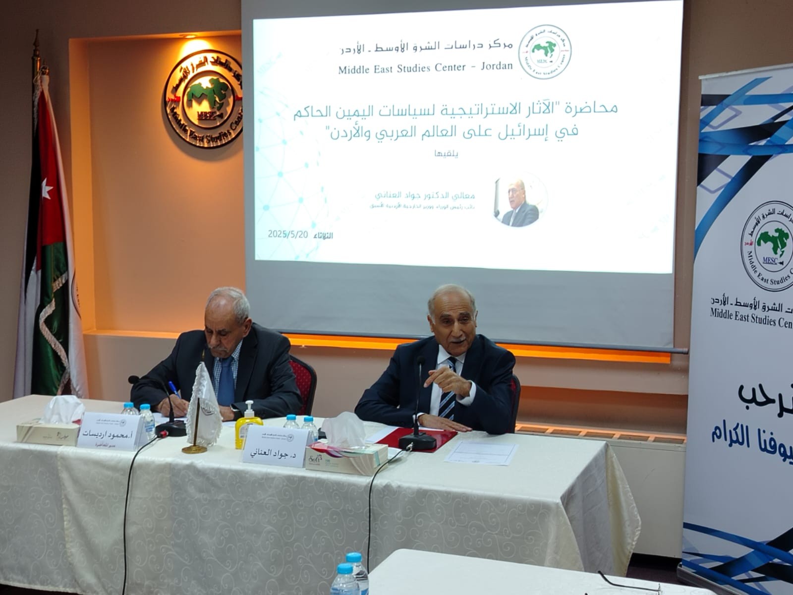 وأكد اللواء المتقاعد محمود إرديسات خلال تقديمه للمحاضرة أن اليمين الإسرائيلي الحالي هو أشد تطرفاً من اليمين التقليدي، وهو يعمل على تحويل الأفكار التاريخية لليمين الاسرائيلي إلى واقع، مستغلاً الظروف التي تشهدها المنطقة، وأكد إرديسات أن تطلعات اليمين الاسرائيلي وأهدافه تتجاوز فلسطين وتمتد إلى عدة دول عربية وإسلامية.