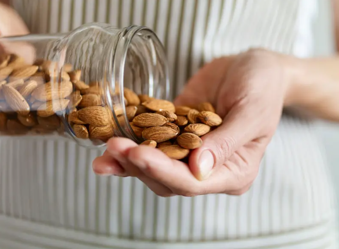 حفنة من اللوز توفر جرعة جيدة من الكالسيوم، إلى جانب الدهون الصحية والألياف. ولتحسين الهضم، يُفضل نقعه في الماء طوال الليل قبل تناوله.