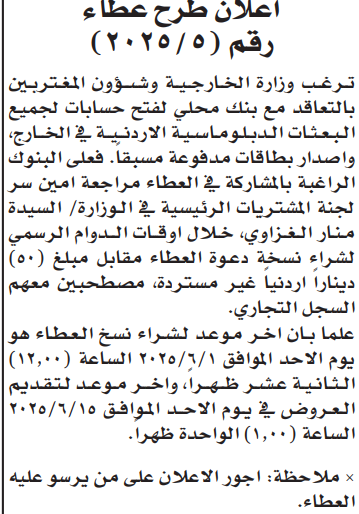 عطاء صادر عن وزارة الخارجية وشؤون المغتربين
