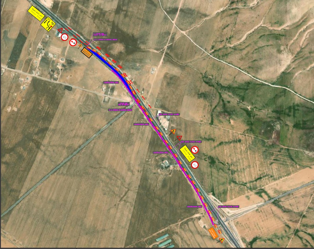 وأوضحت الوزارة أنه سيتم تنفيذ تحويلات مرورية مؤقتة تشمل فصل مسار الطريق القادم من جسر الرمثا، مع تركيب حواجز بلاستيكية مدعمة بإشارات تحذيرية وإرشادية.