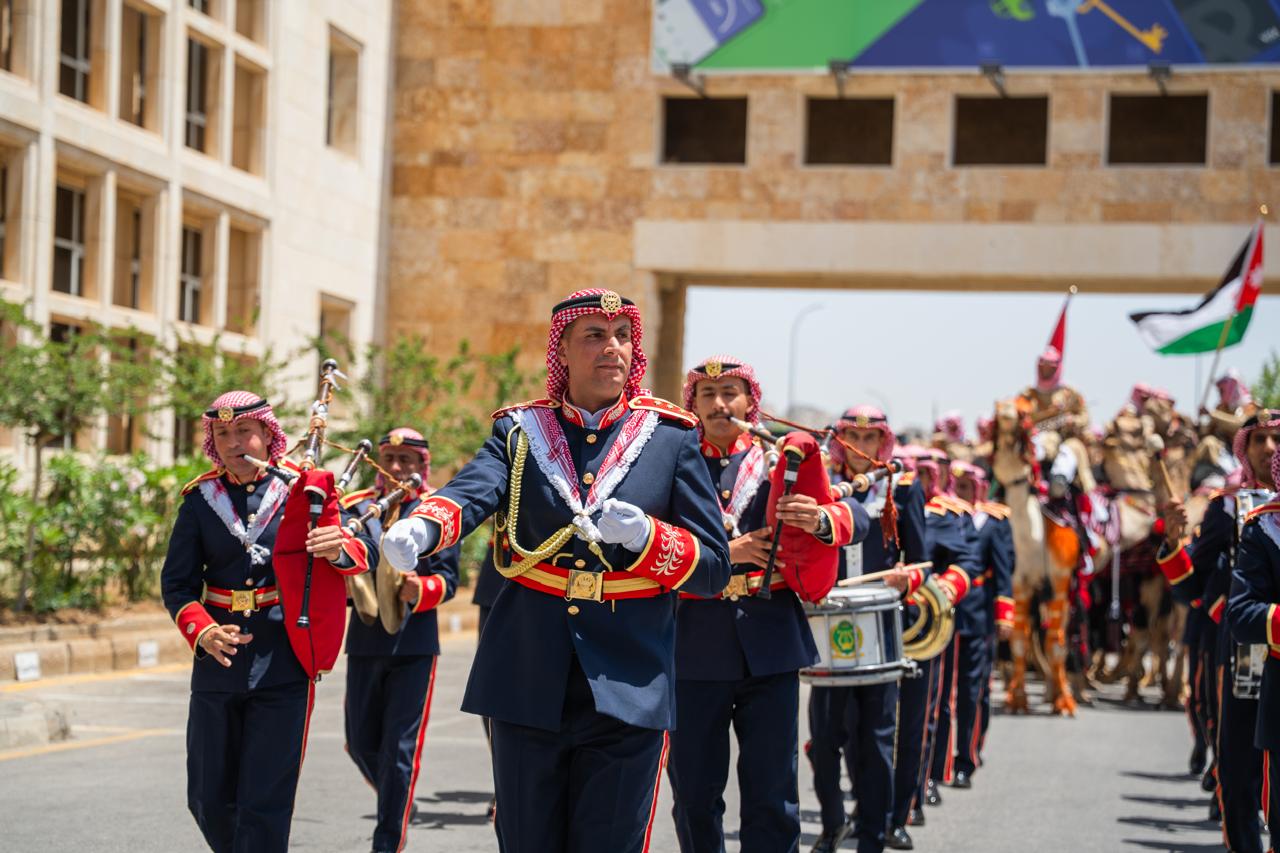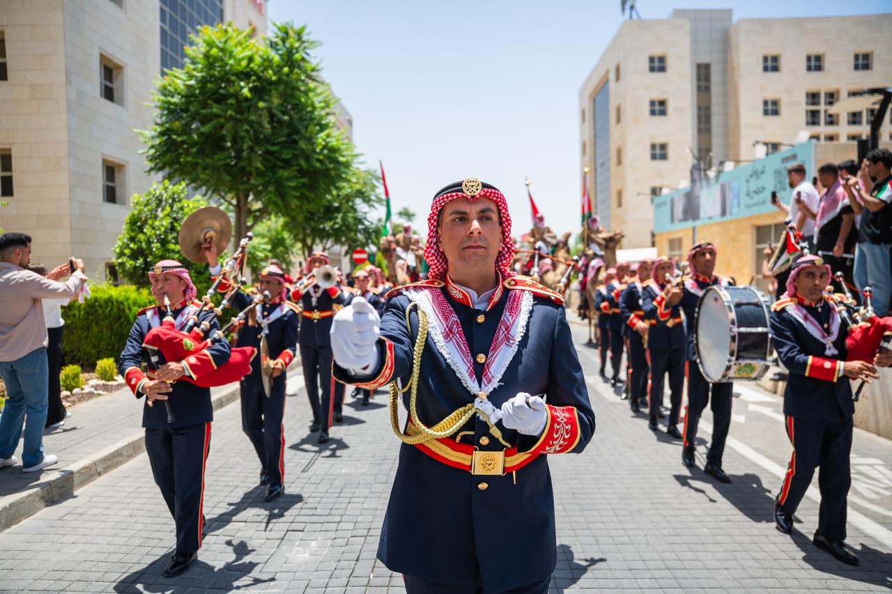 وتضمّن الحفل مجموعة من الفعاليات الوطنية والفنية التي عبّرت عن وحدة الأردنيين وغنى الموروث الثقافي، من بينها عروض لموسيقات القوات المسلحة الأردنية، وعرضاً مميزاً لـوحدة الهجانة الملكية، وفقرة استعراضية لـخيالة فرسان الأمن العام، بالإضافة إلى عرض فلكلوري مهيب لوحدة الهجانة وفرقة السامر الأردنية، فضلاً عن عرض لشاعر وعازف الربابة من وحدة الهجانة، وعرض للصقور. كذلك، اشتمل موقع الاحتفال على أركان تراثية مثل خبز الطابون وبيت الشعر الذي جمع الحضور على صور تعبّر عن الوفاء للأصالة والهوية.