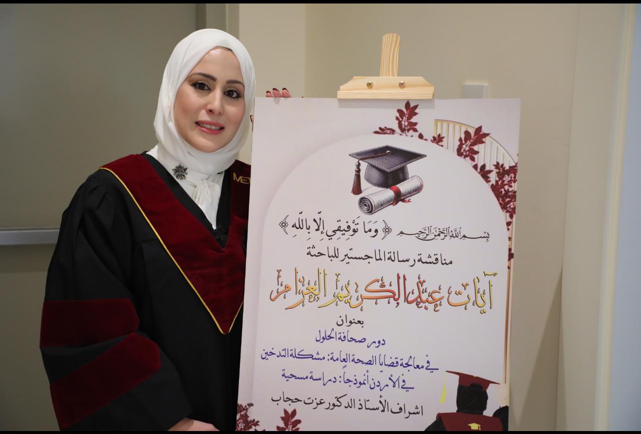 الزميلة آيات العزام تحصل على الماجستير في صحافة الحلول22-05-2025 10:48 PM