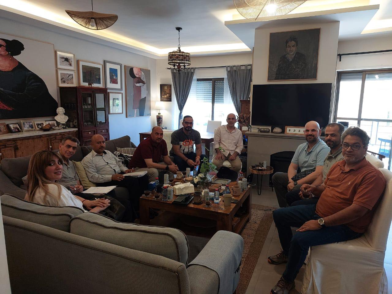 عمون - في اجتماع ولقاء حميم وجميل في منزل الفنان امجد رسمي تسلم الفنان عمر عدنان العبداللات رئاسة وراية رابطة رسامي الكاريكاتير الاردنيين بعهد وفاء للفنان المؤسس الراحل جلال الرفاعي . |